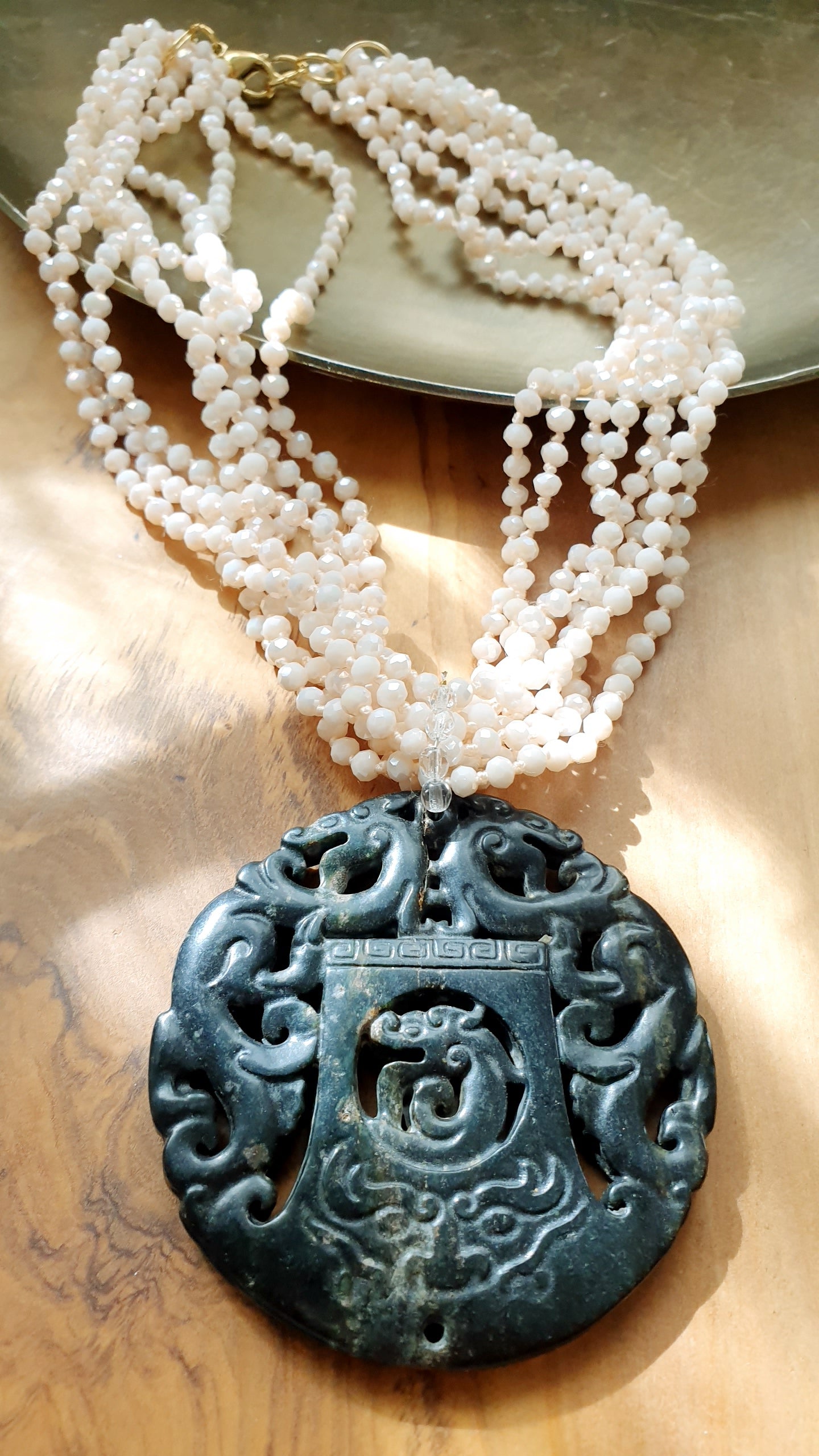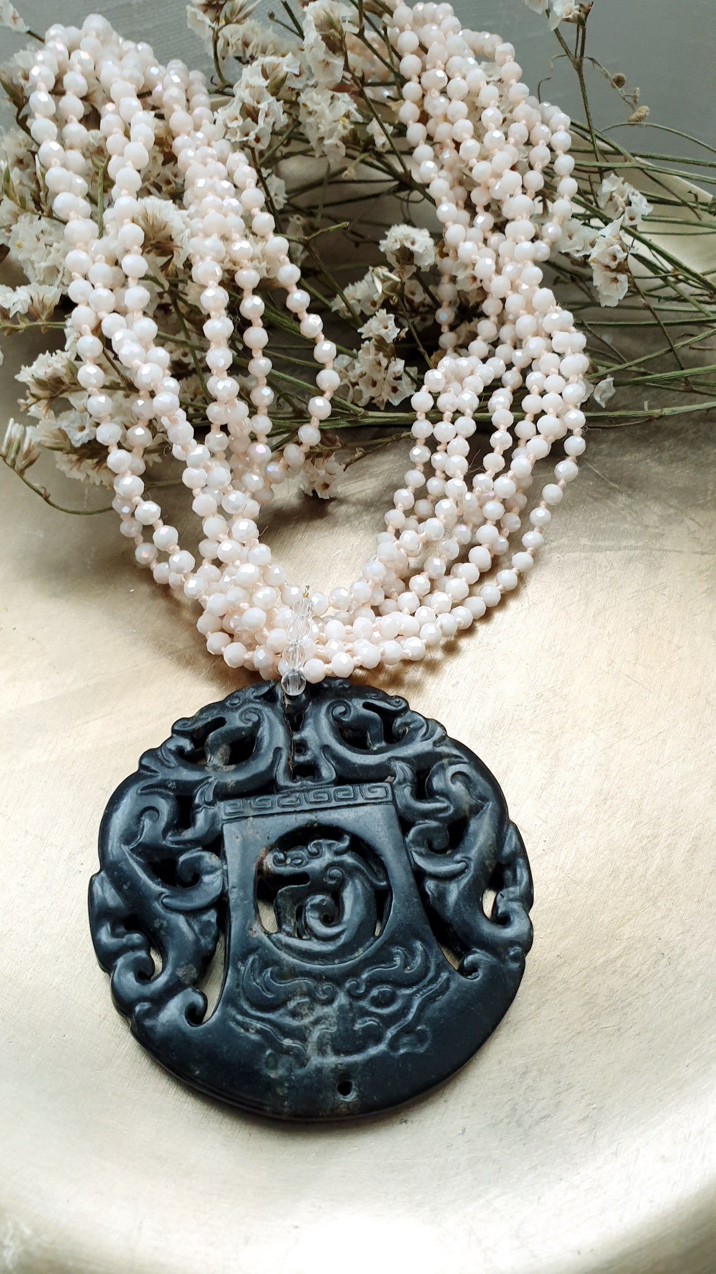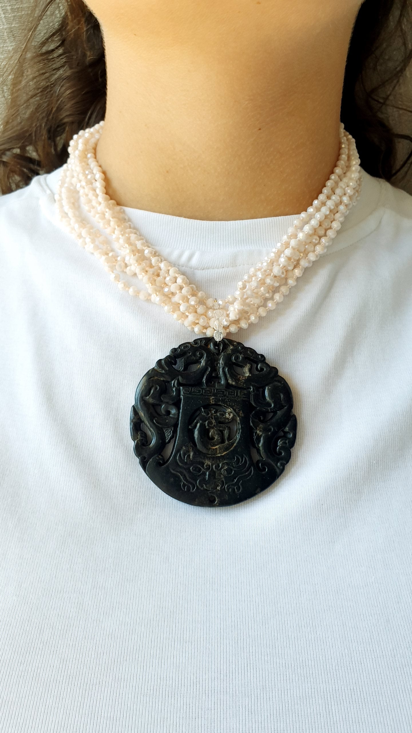 Girocollo con cristallini e giada intagliata