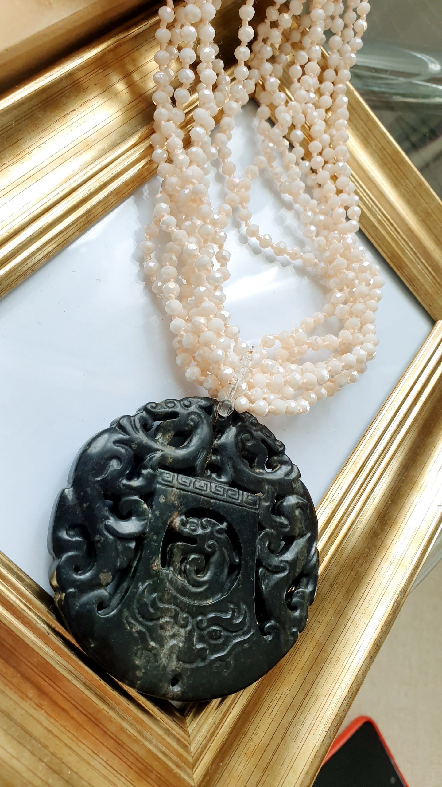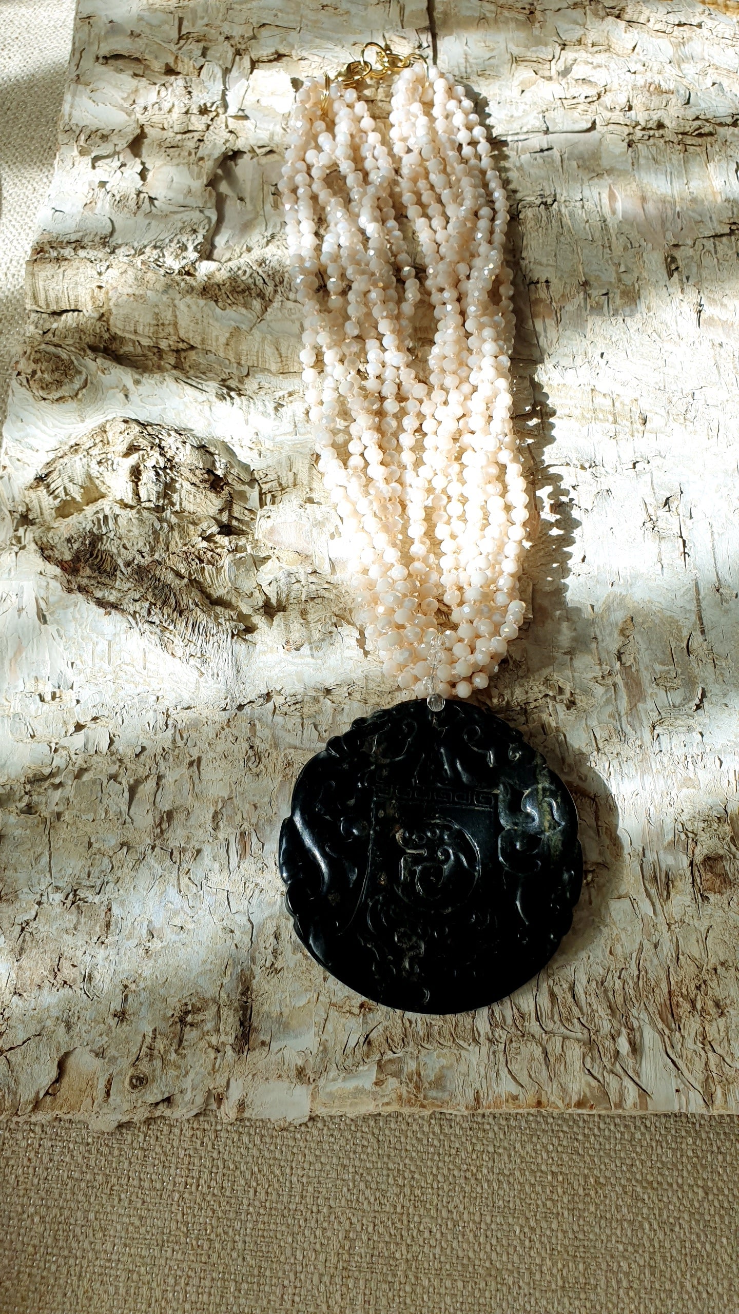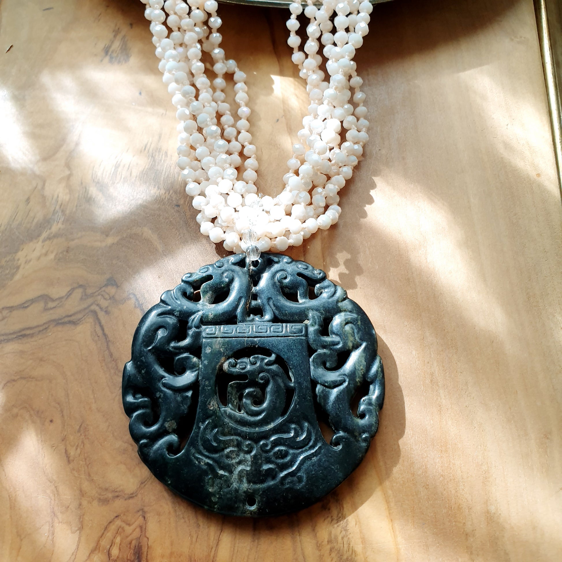 Girocollo con cristallini e giada intagliata
