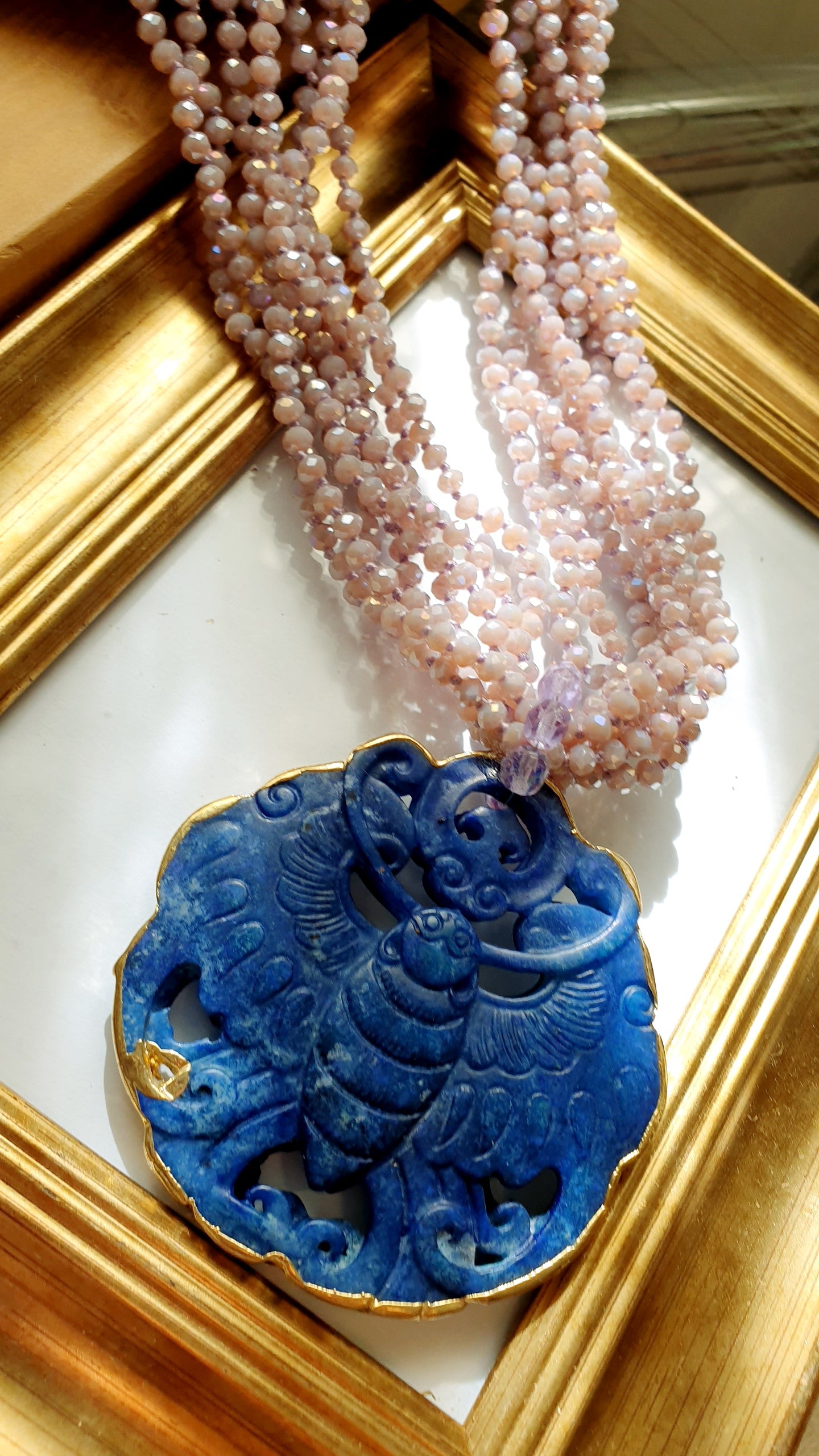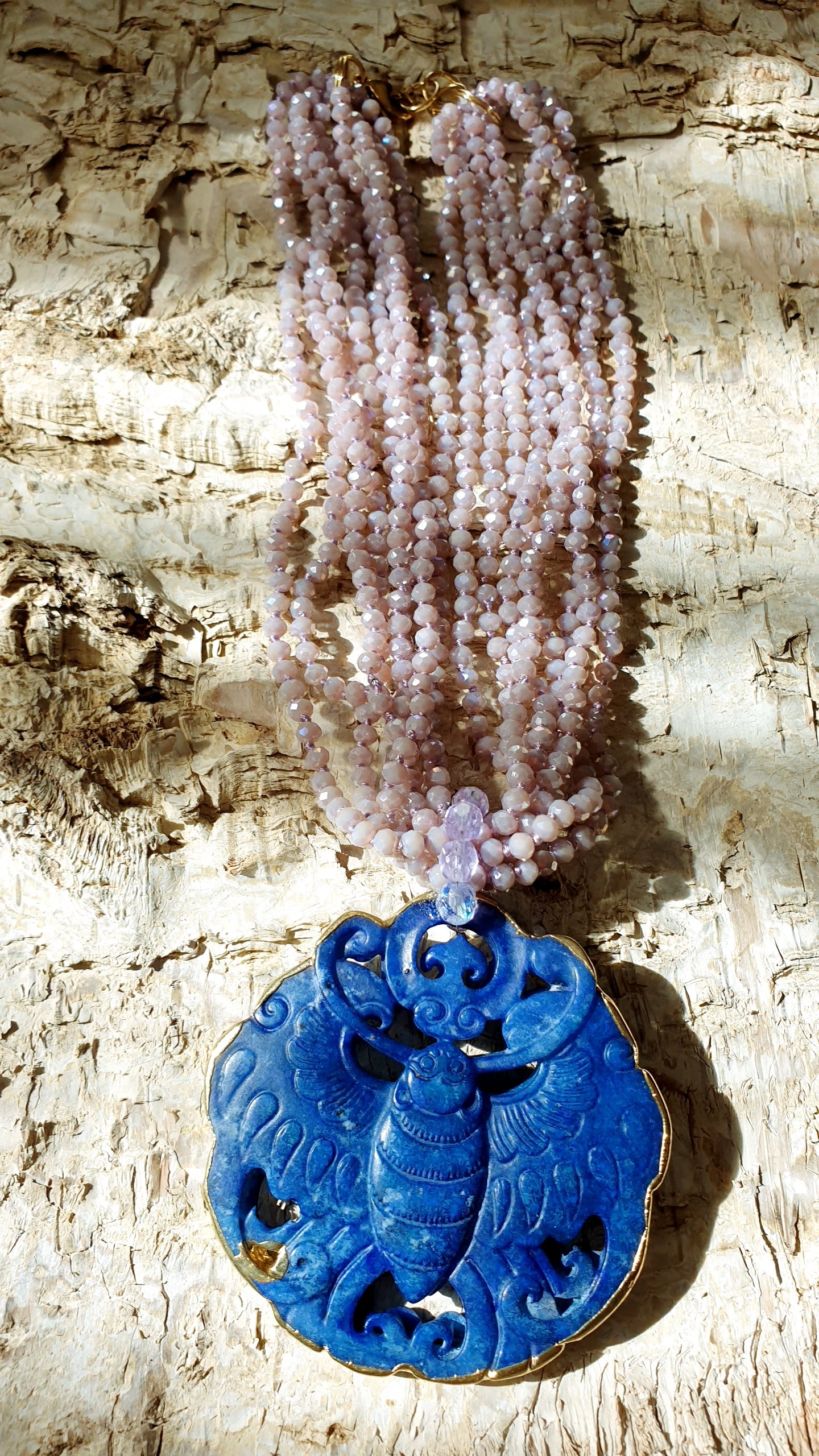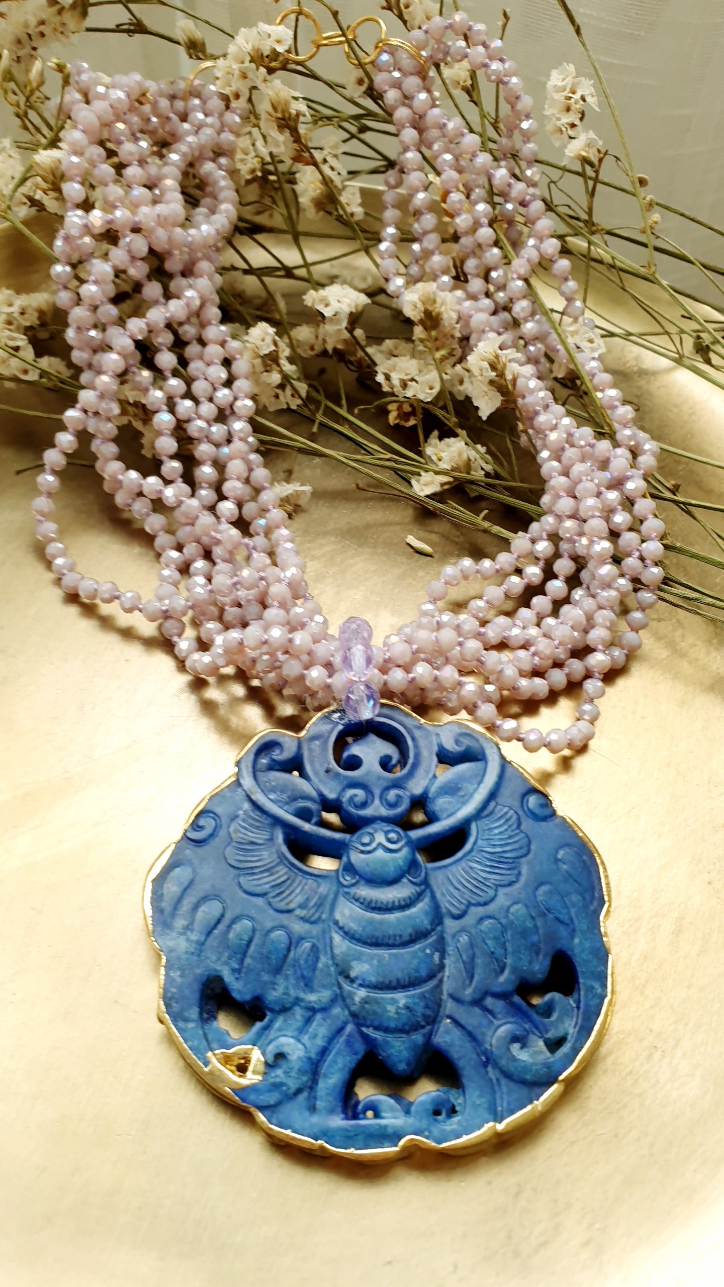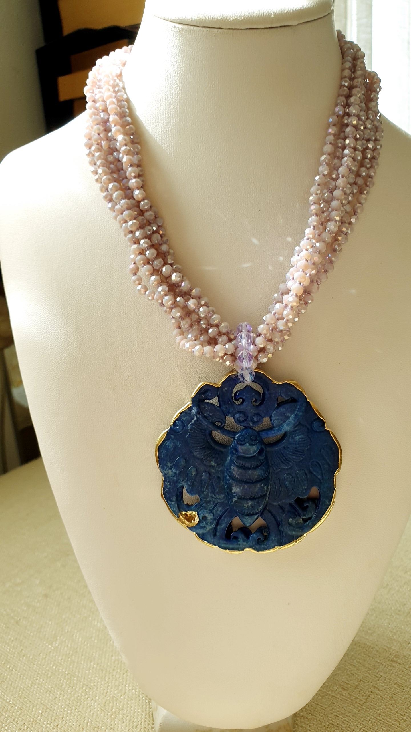 Collana artigianale realizzata con girocolli di cristallini lavanda con chiusura in acciaio lunga cm. 41.