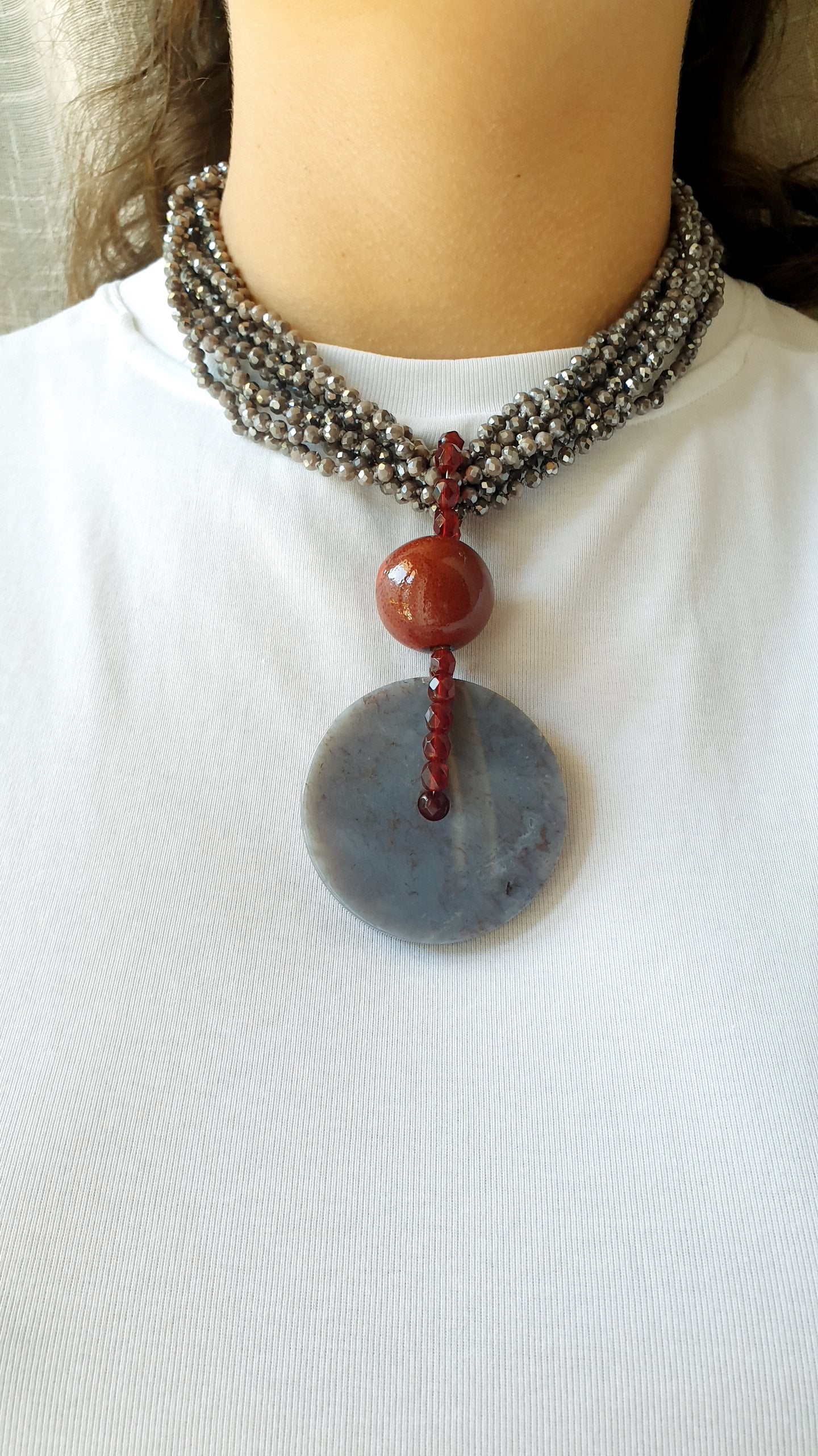 Collana artigianale realizzata con girocollo in cristallini con chiusura a moschettone in acciaio.