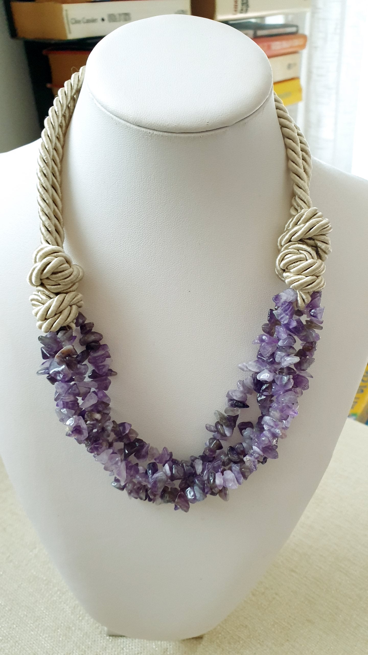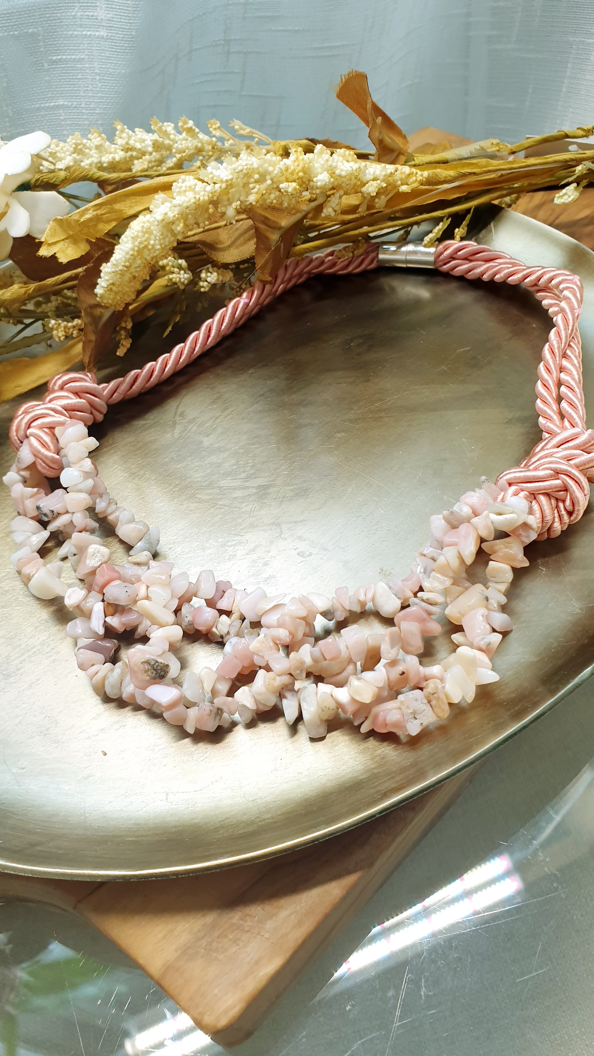 Handgefertigtes Halsband aus gedrehter Seide mit Magnetverschluss.