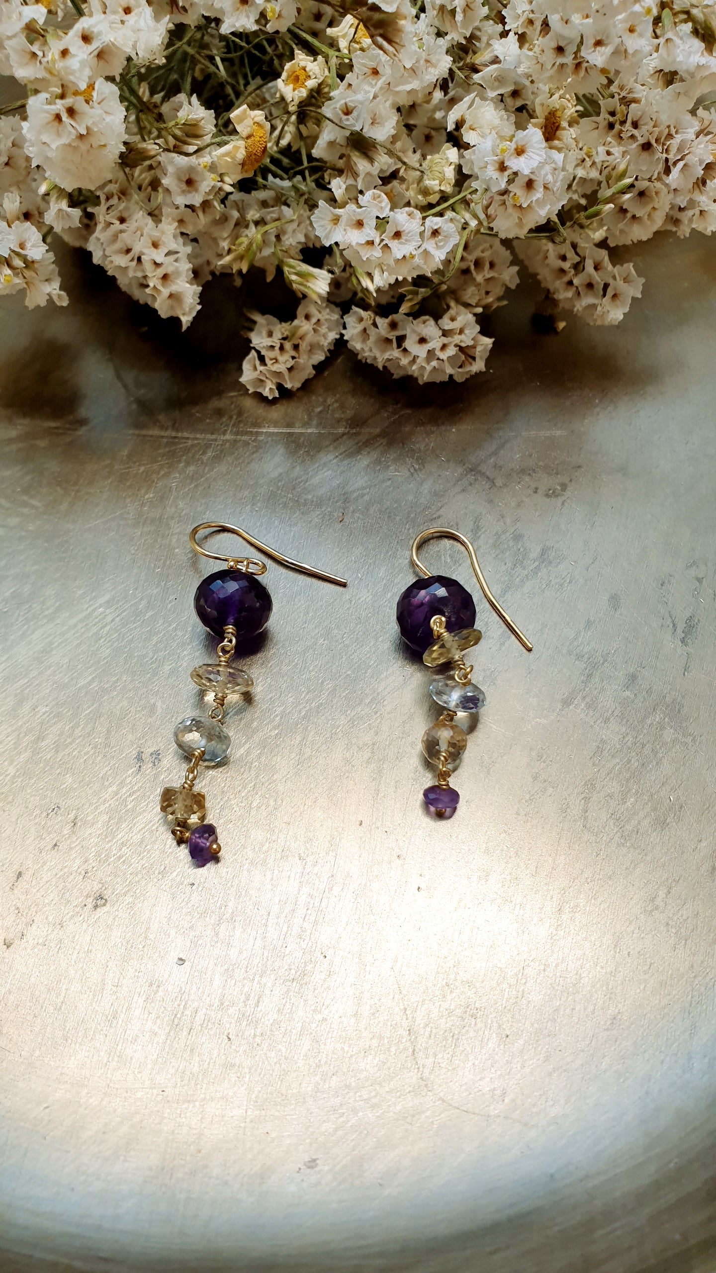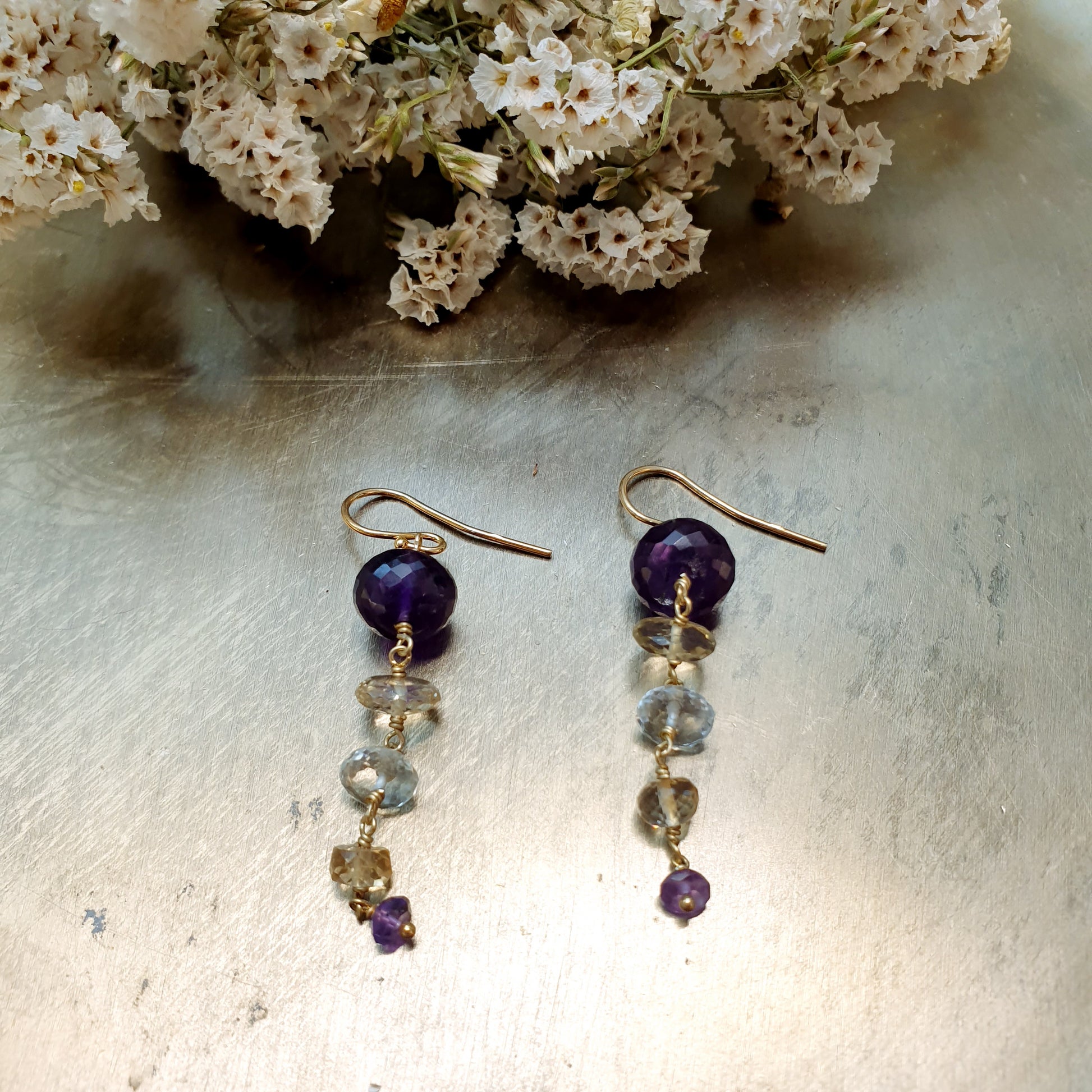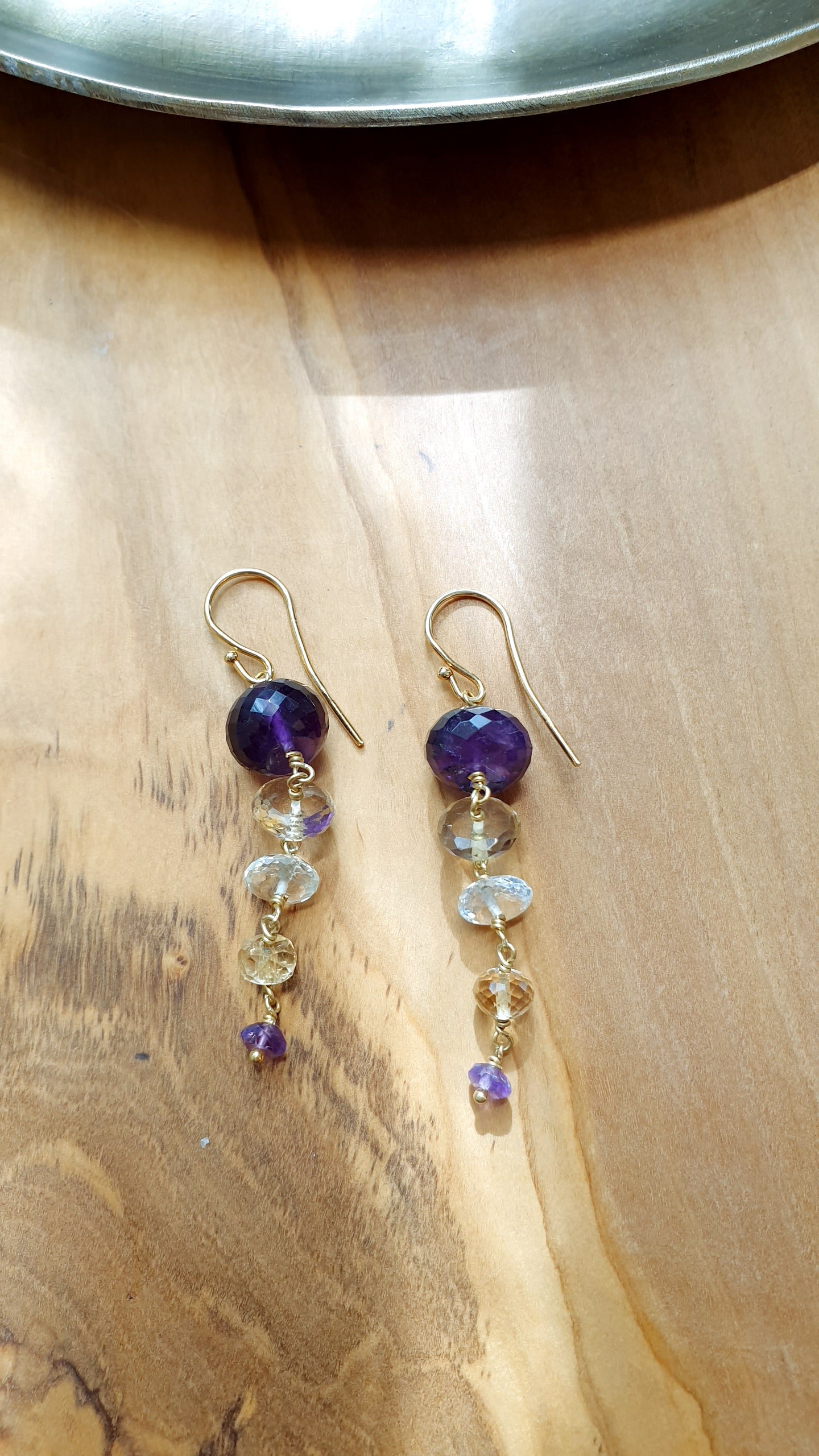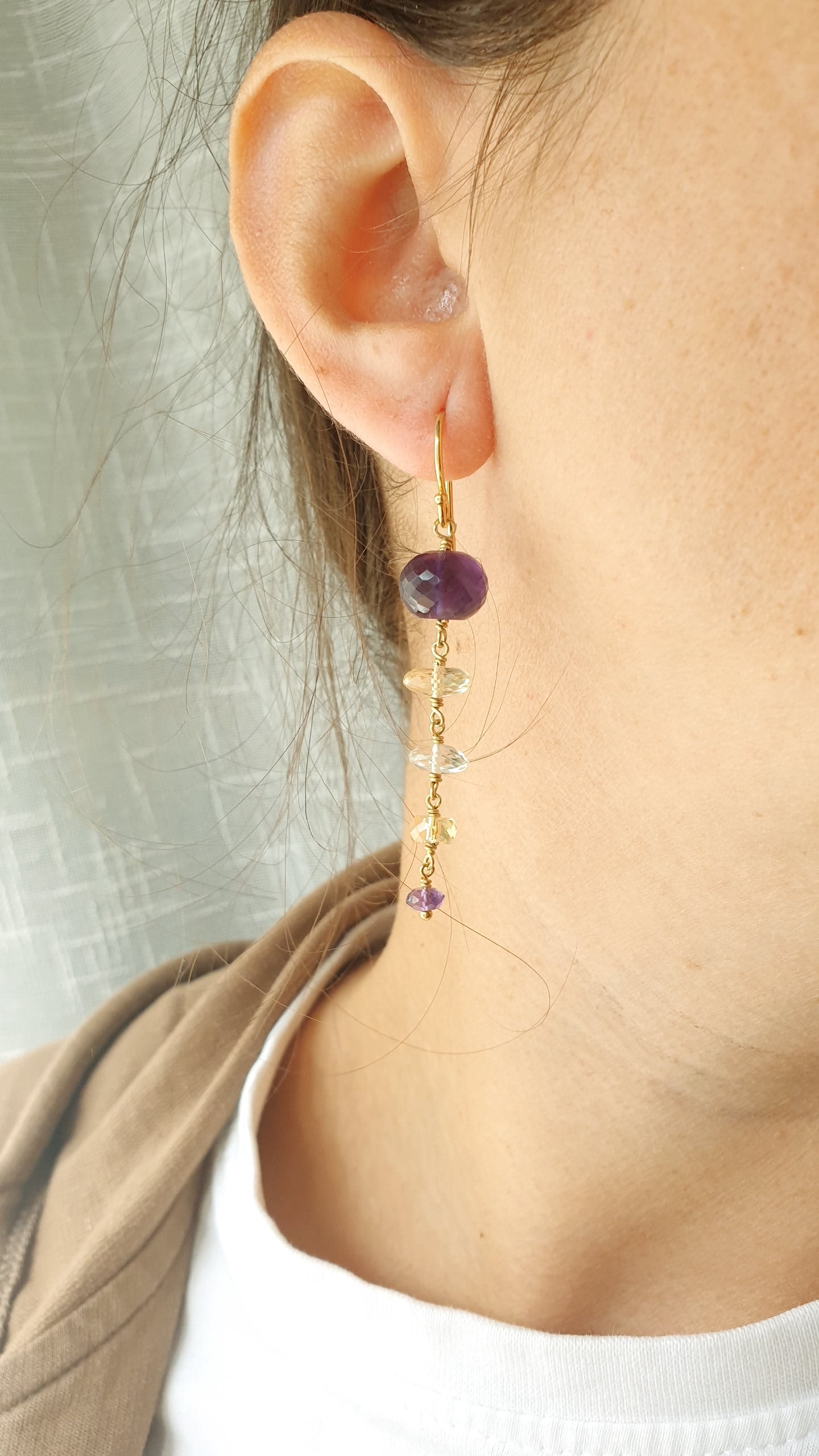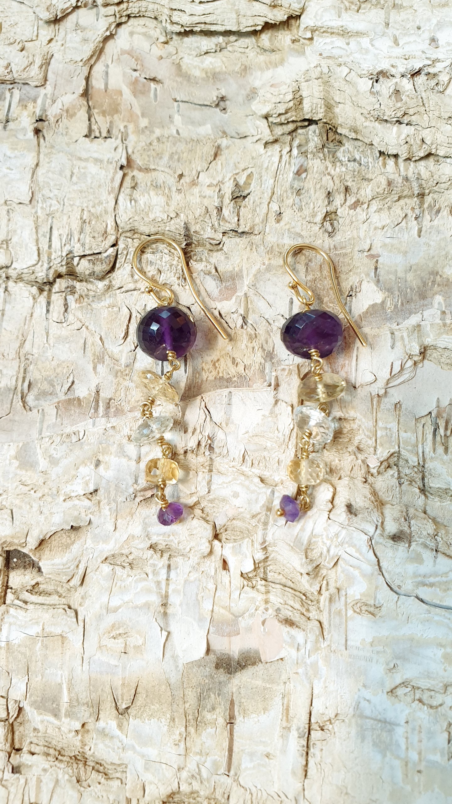 Orecchini in argento con ametista, citrino, quarzo bianco