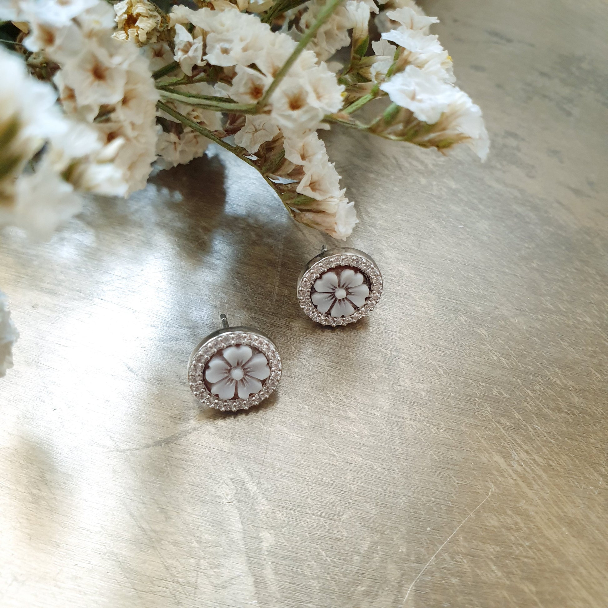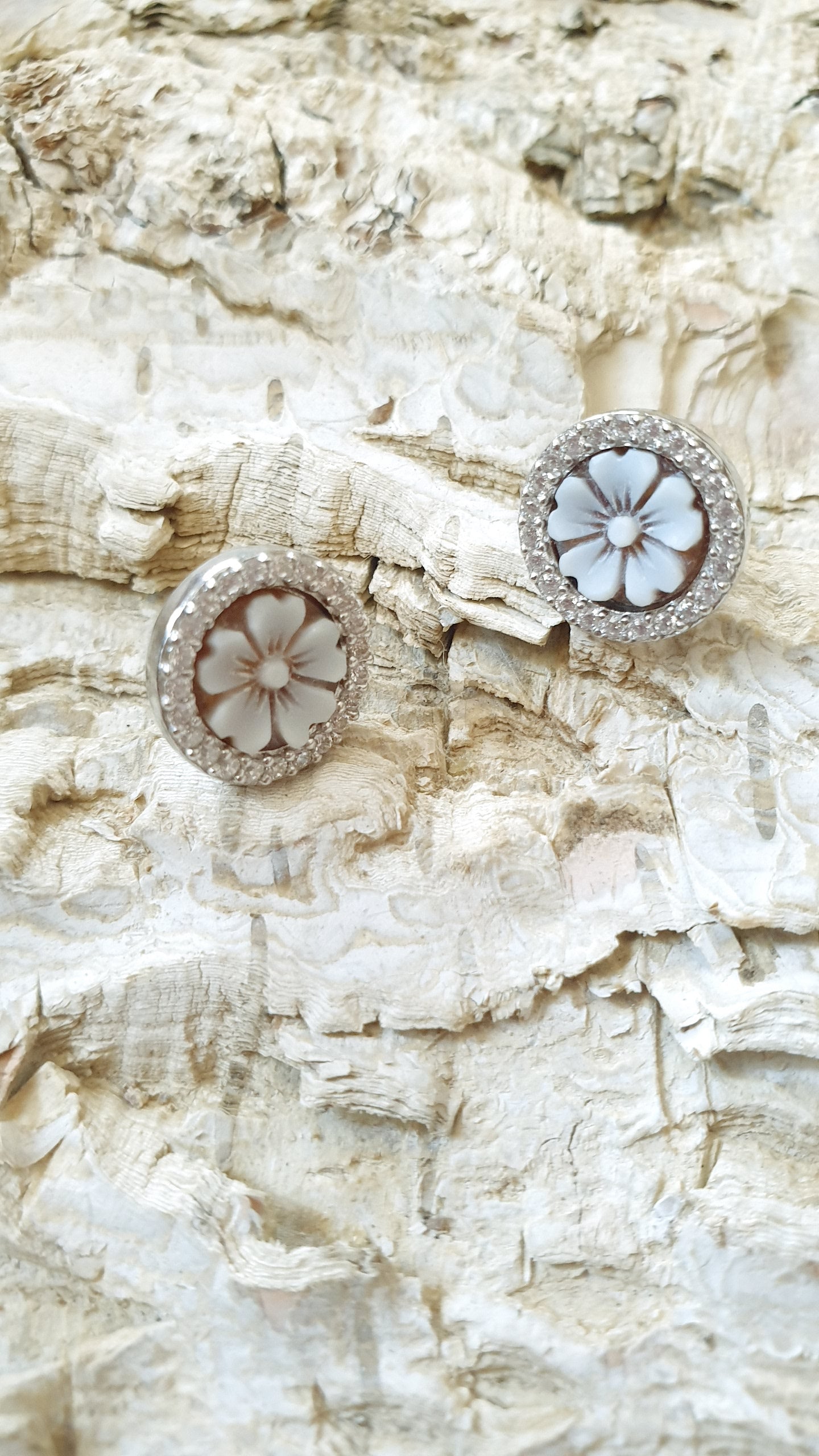 Cammeo floreale da Maestro di Torre del Greco mm. 10, zirconi