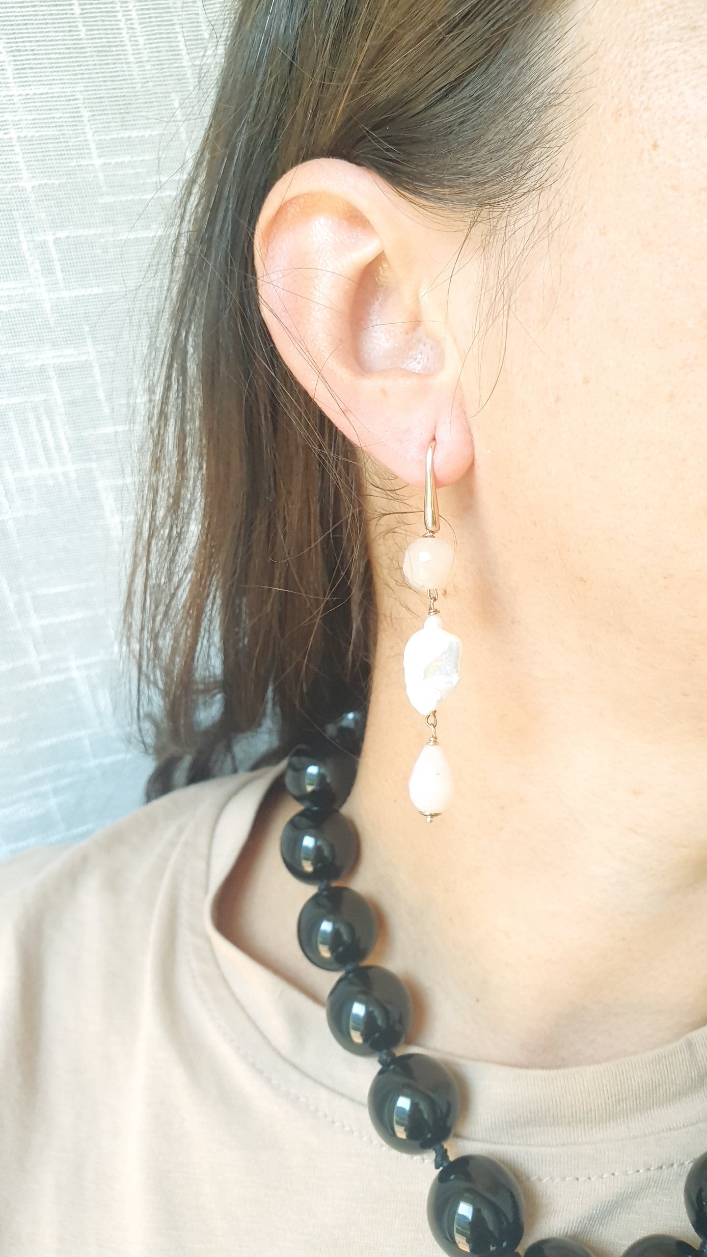 Orecchini in argento con cammeo, quarzo rosa, perla di fiume