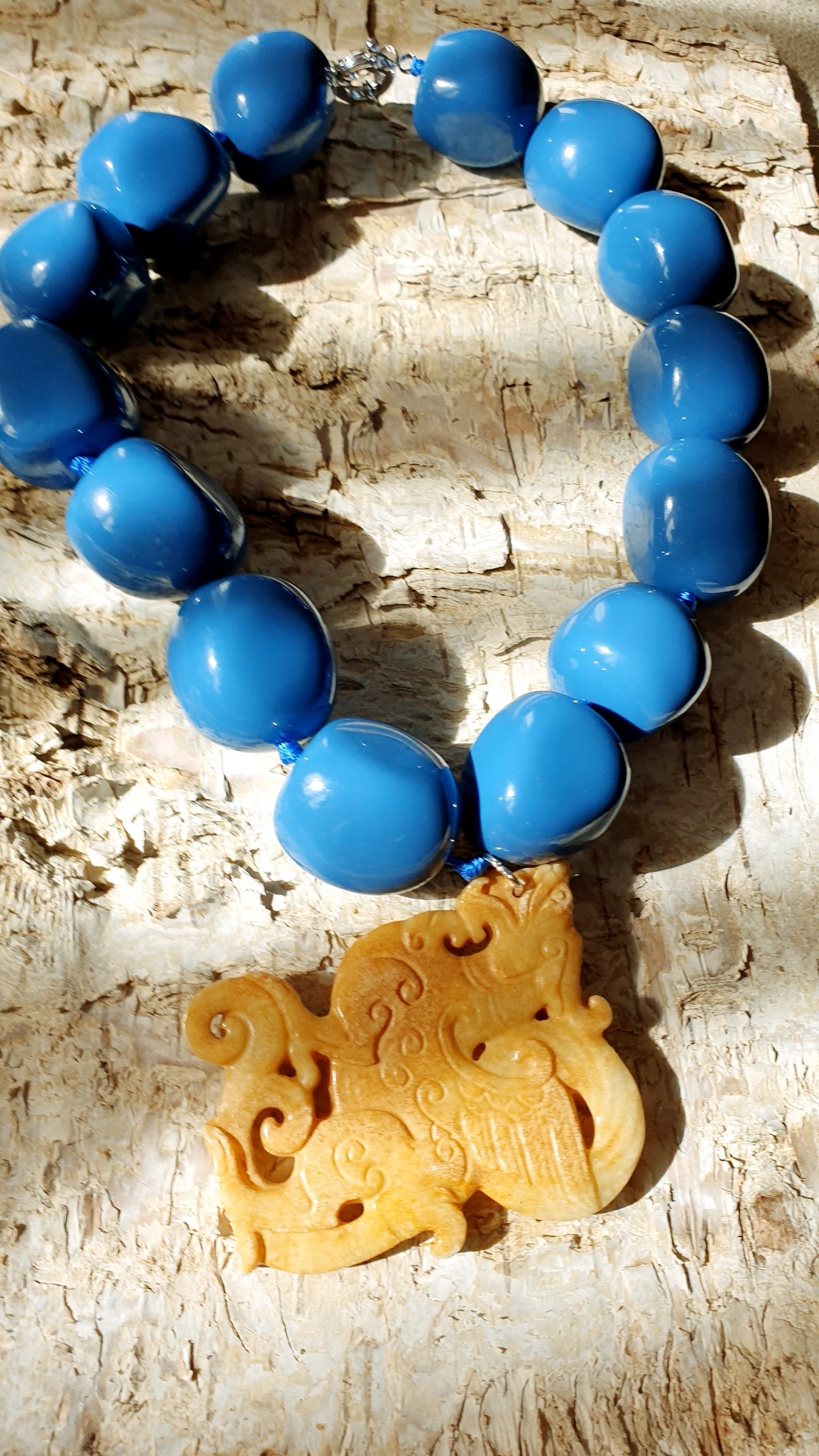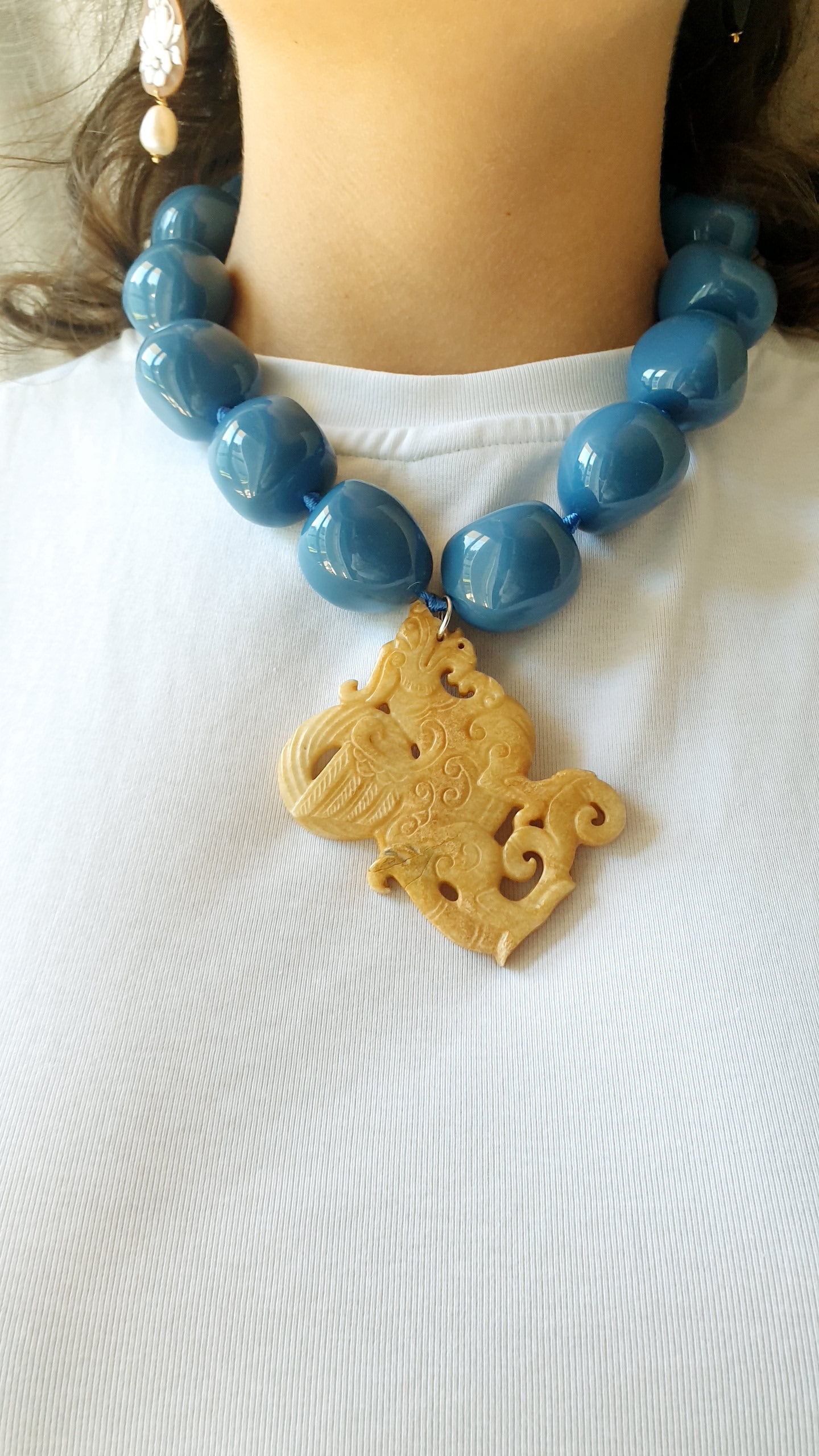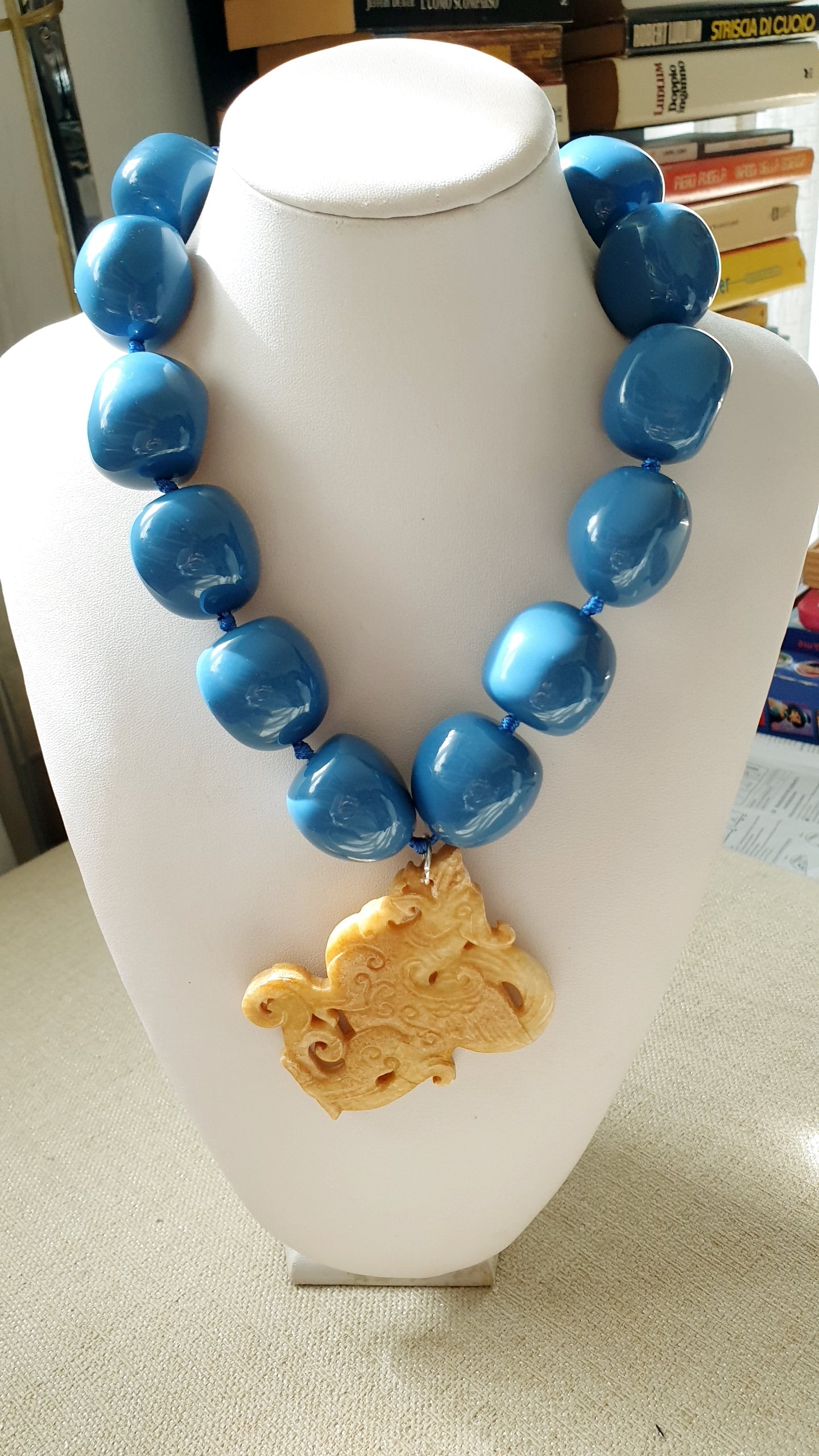 Collana artigianale realizzata con girocollo in sfere di resina petrolio da mm. 30.