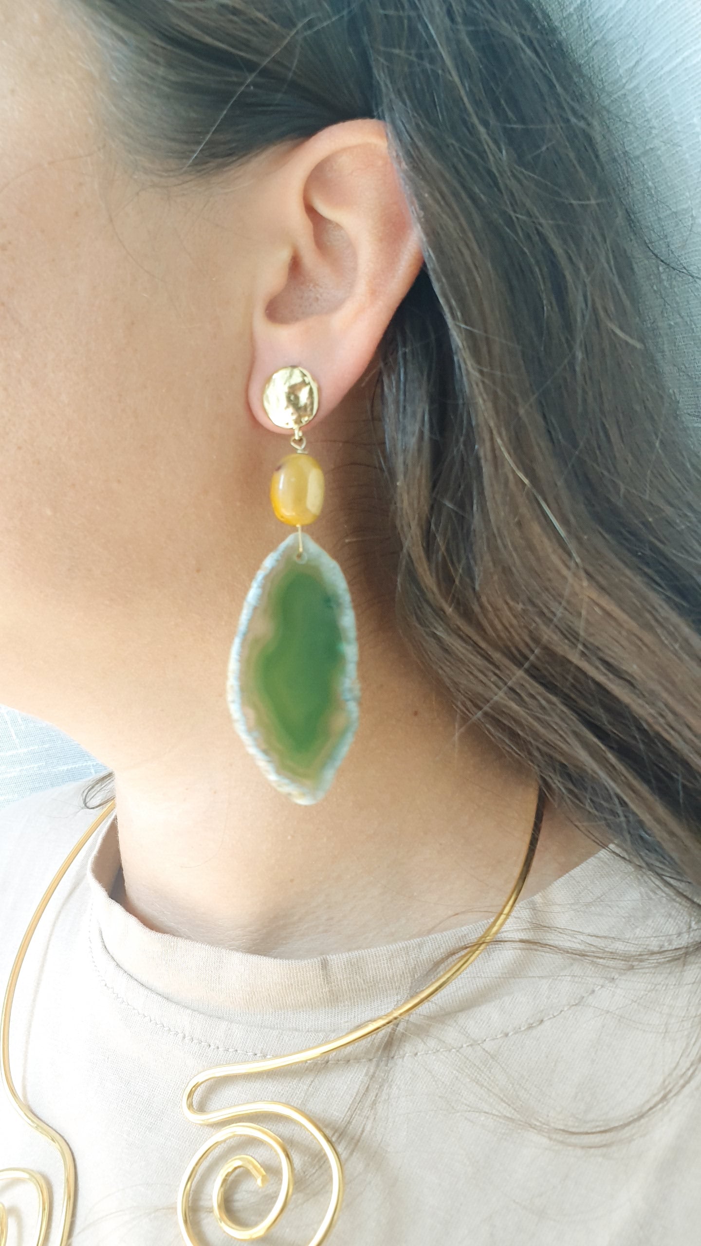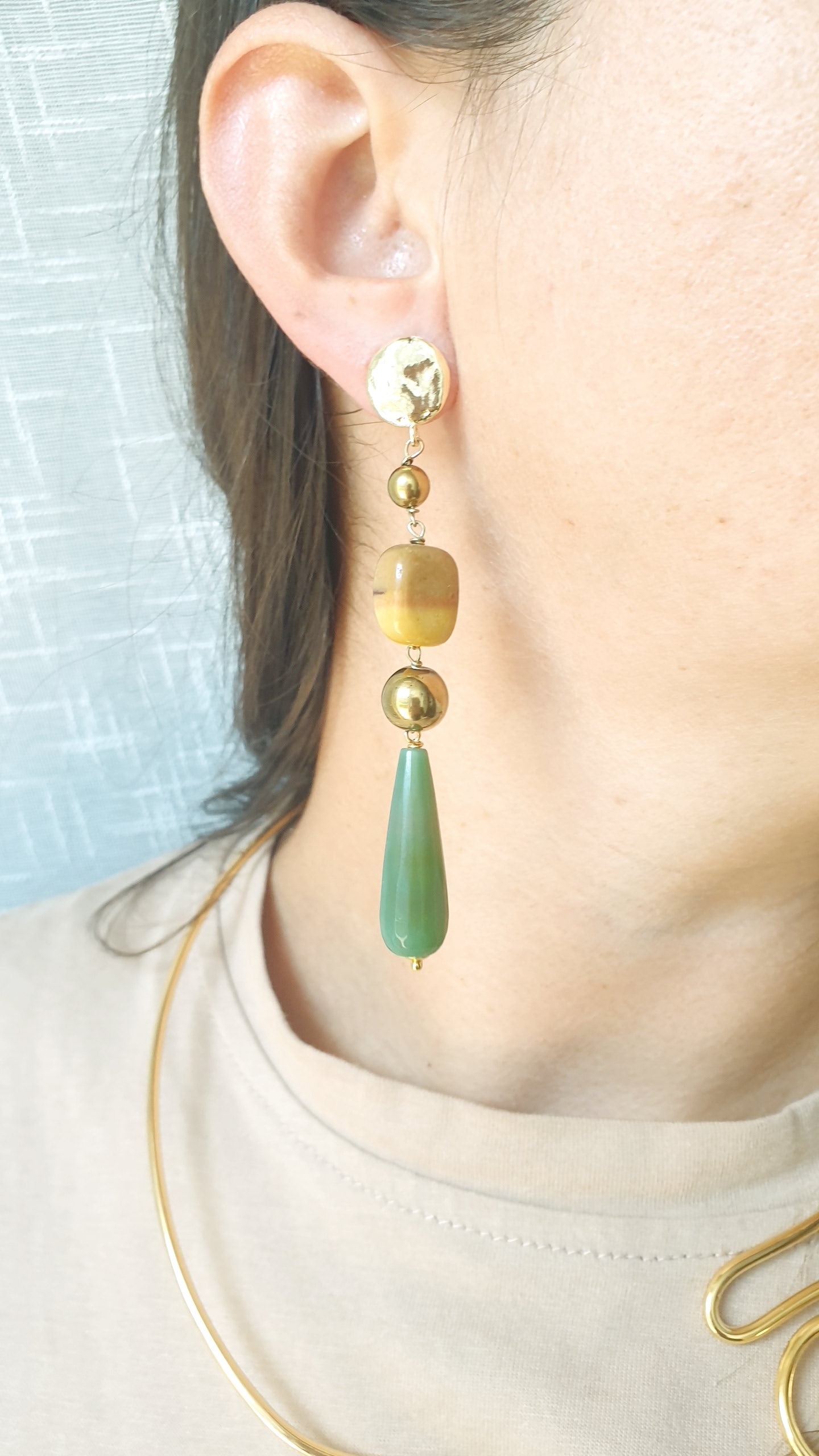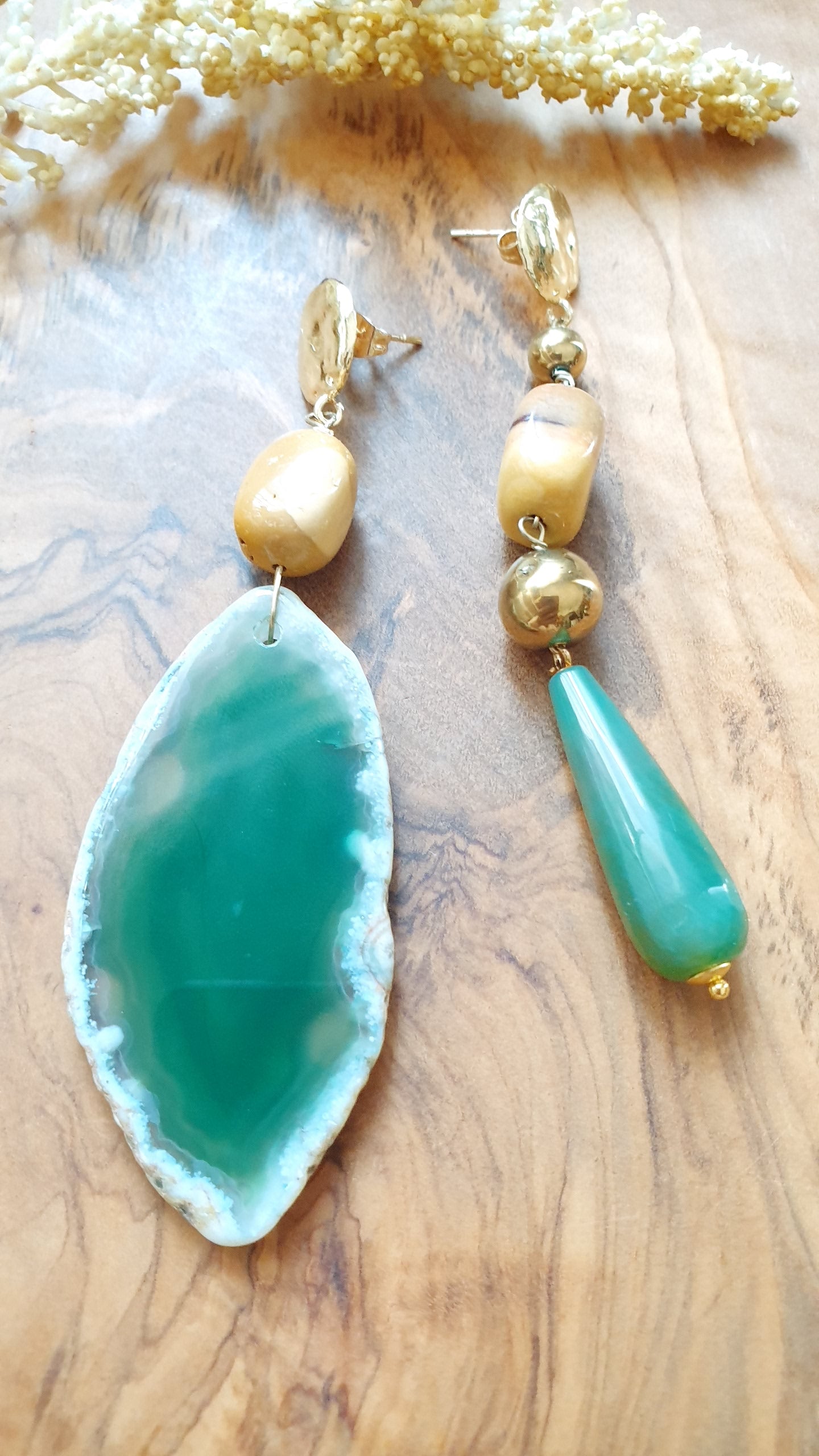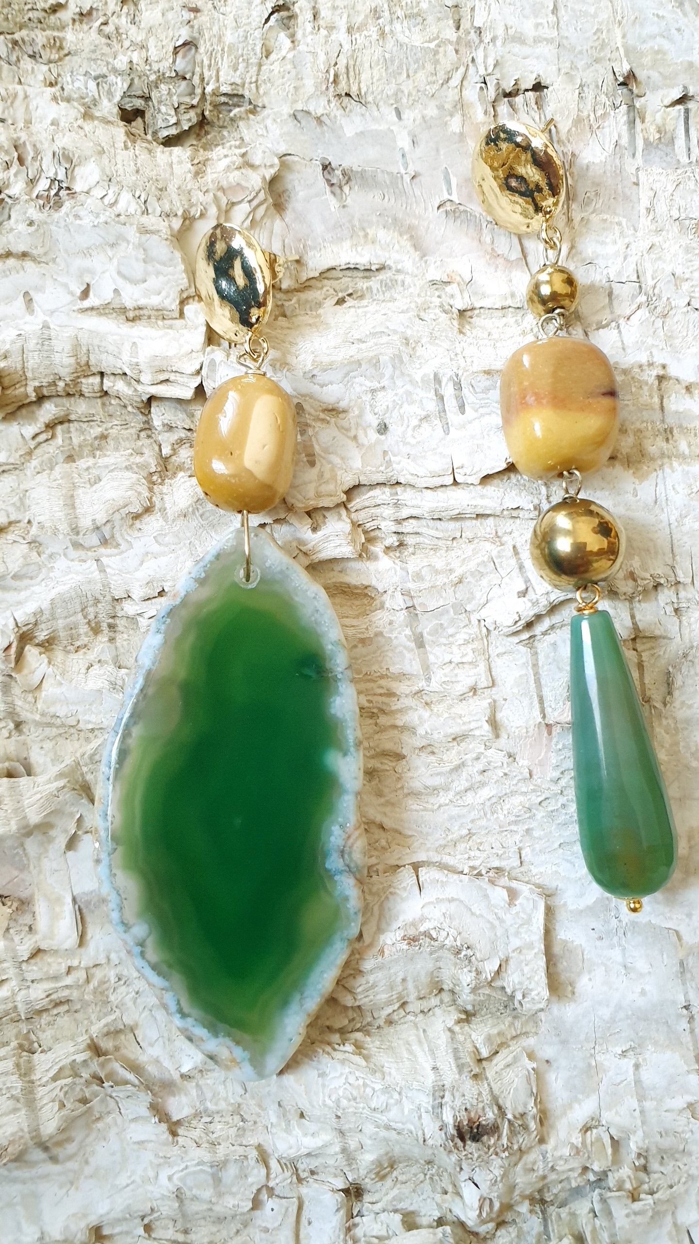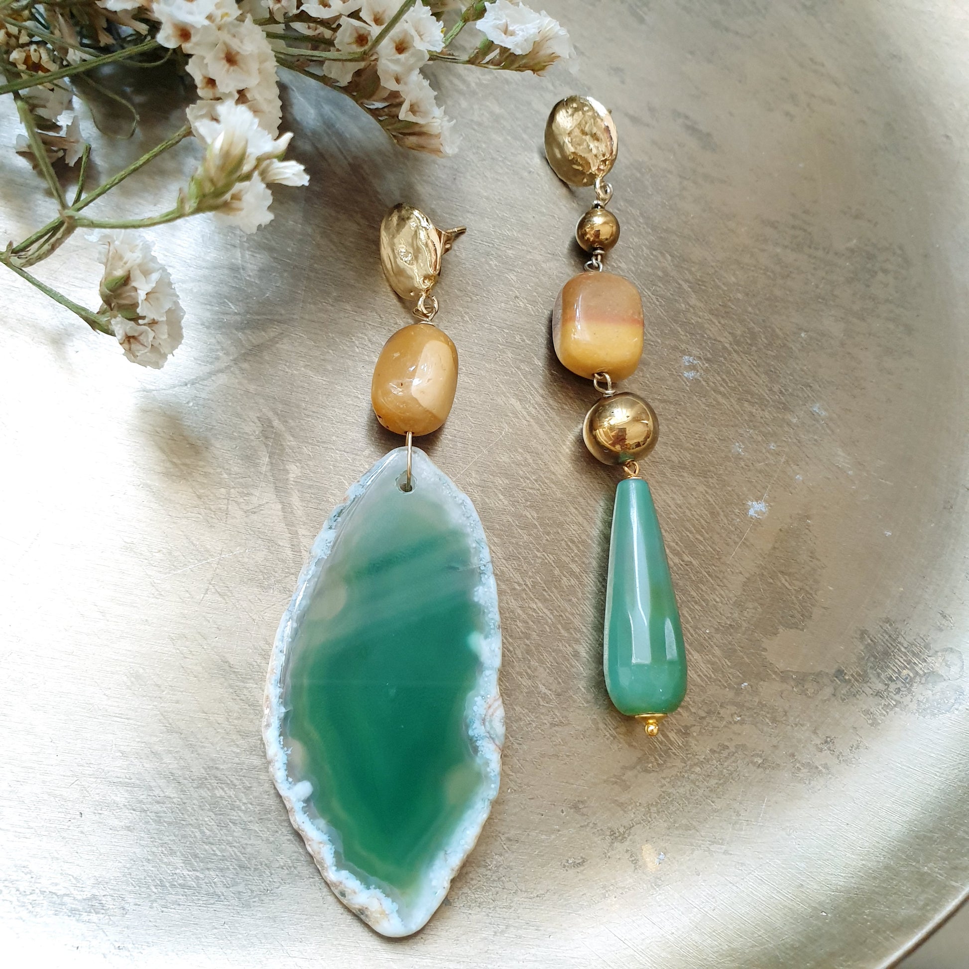 Orecchini in ottone con agata, mokaite, avventurina