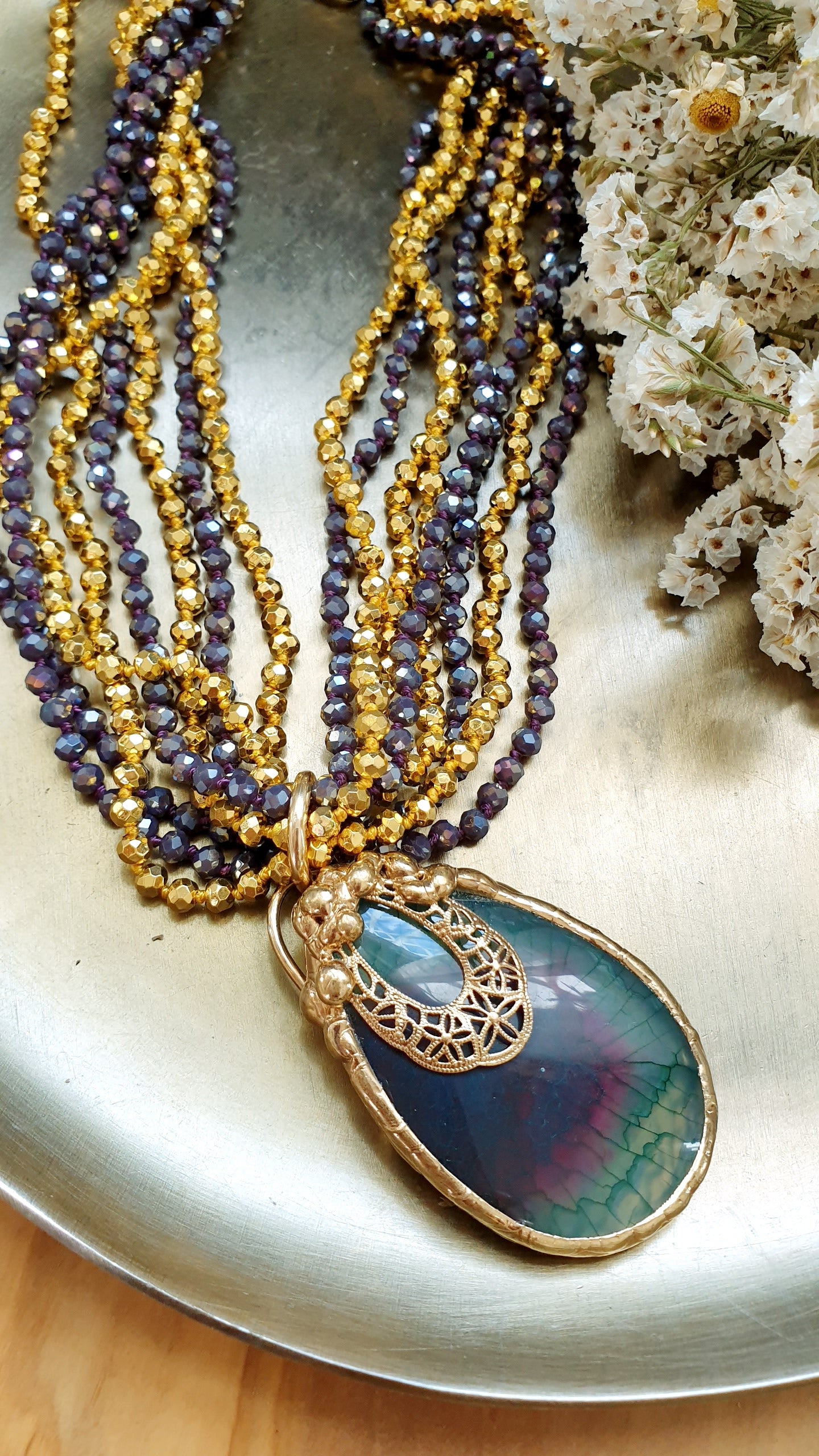 Grande agata cm. 6 x 4 i, filo placcato oro.