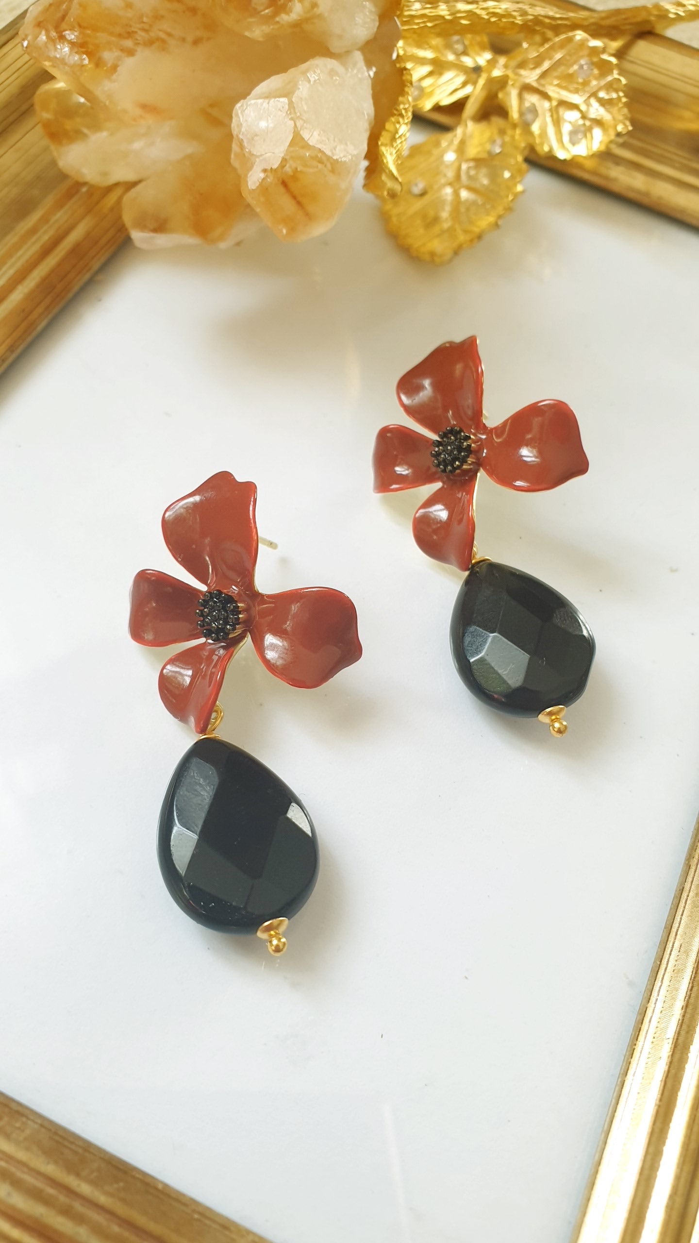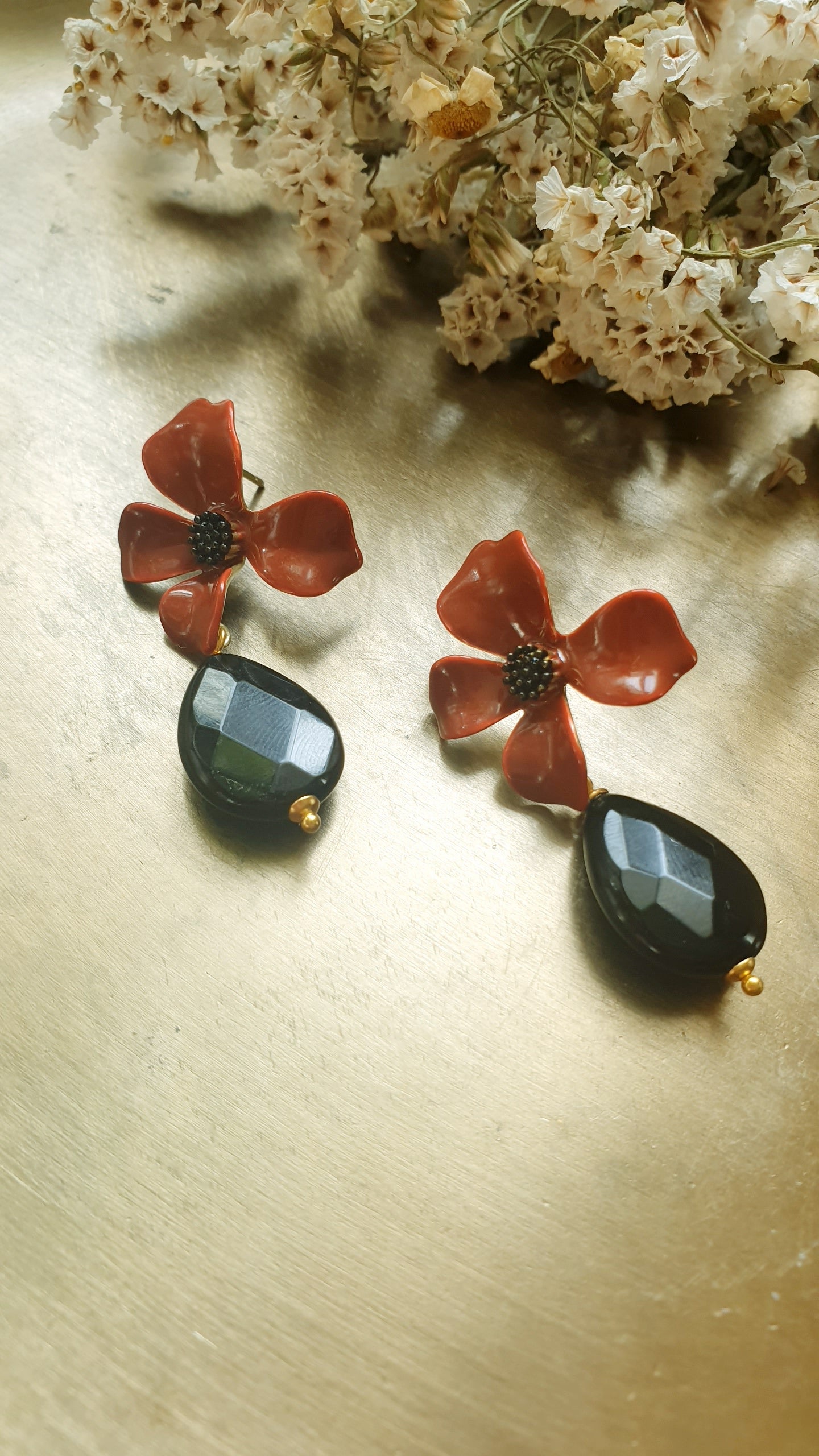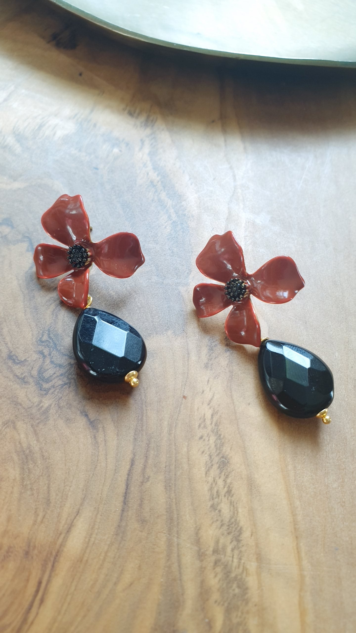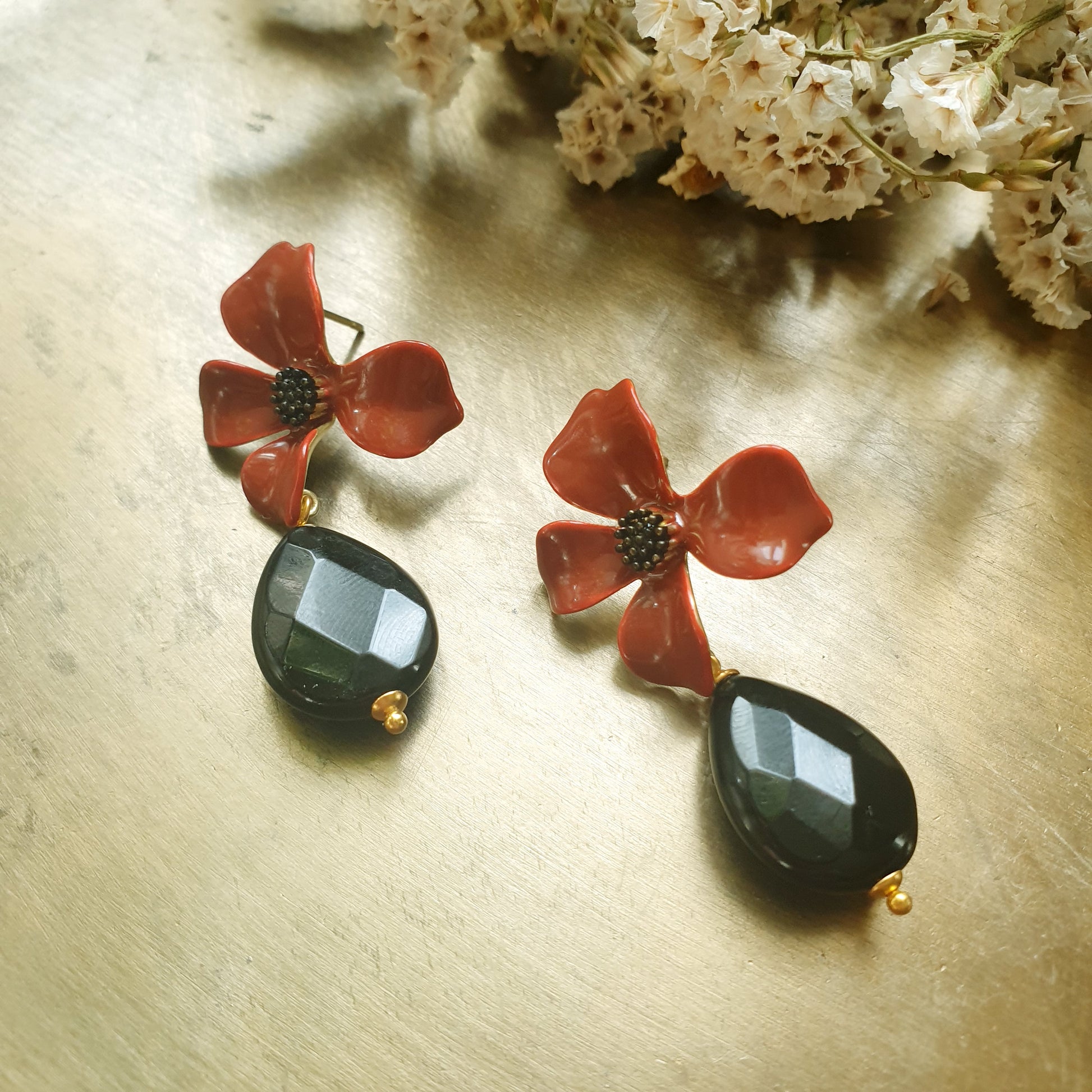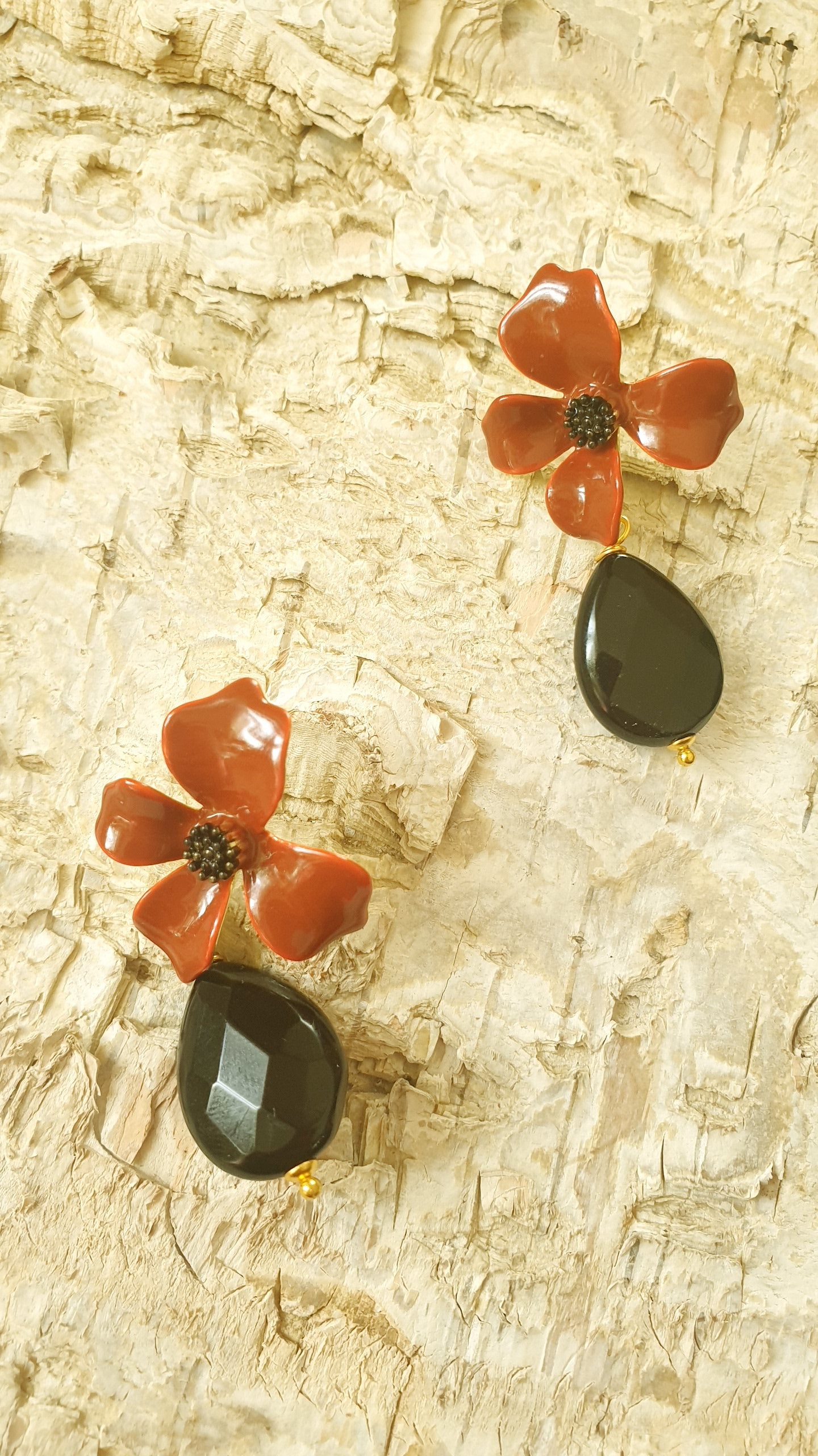 Orecchini artigianali realizzati con gancio fiore laccato a perno in ottone cm. 3