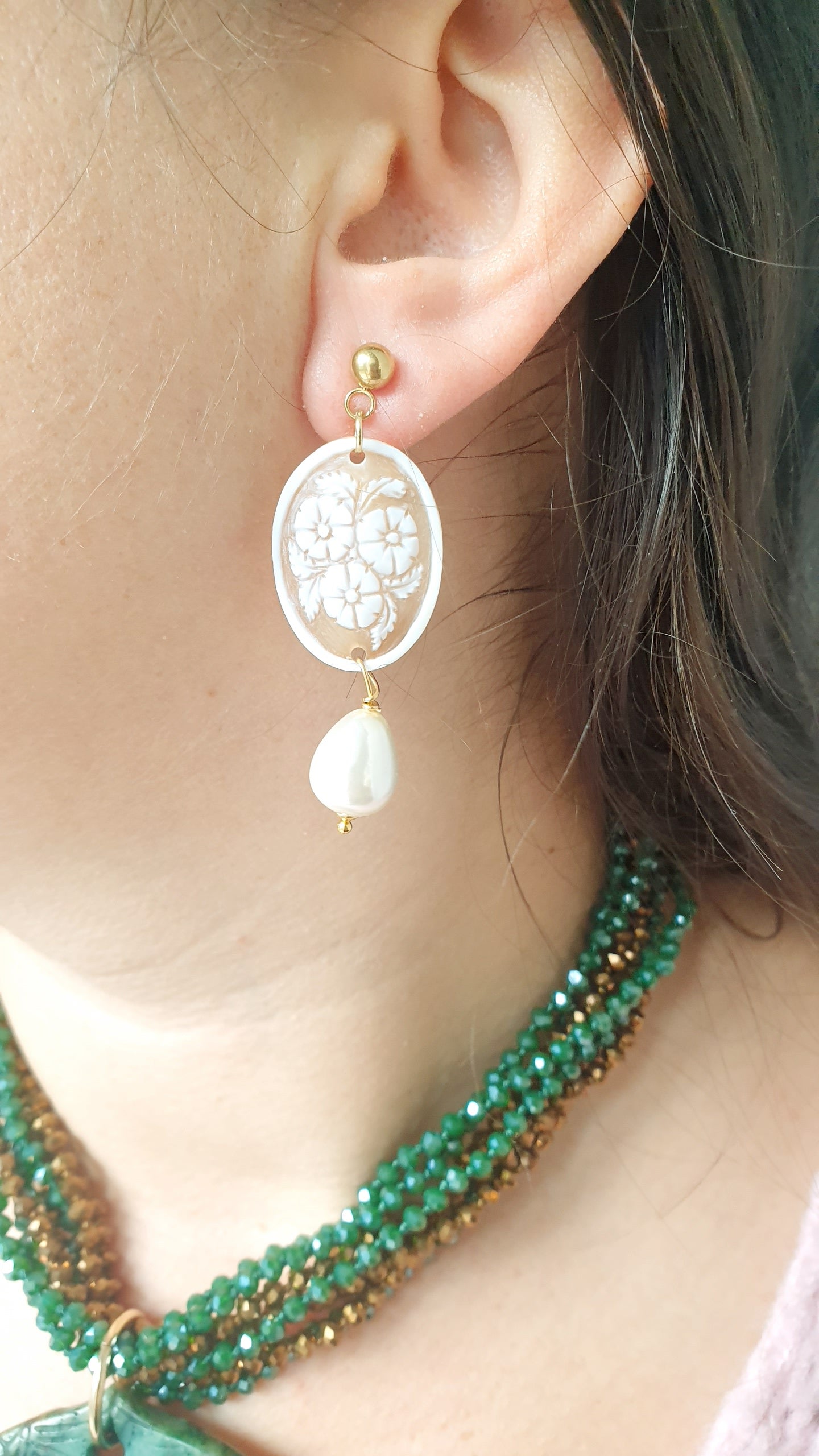 Cammei incisi du conchiglia da artigiano di Torre del Greco cm. 2.5 x 2,