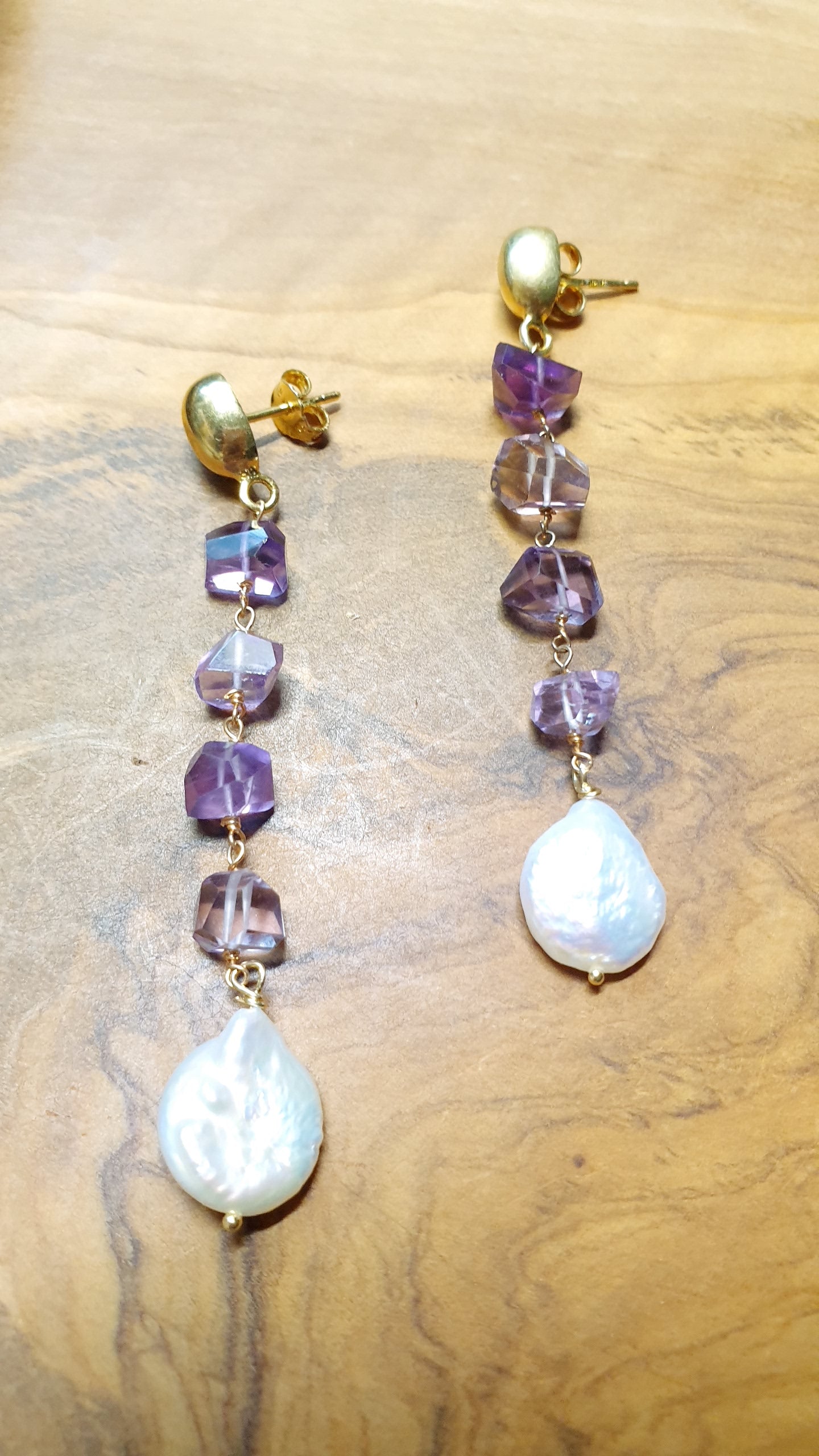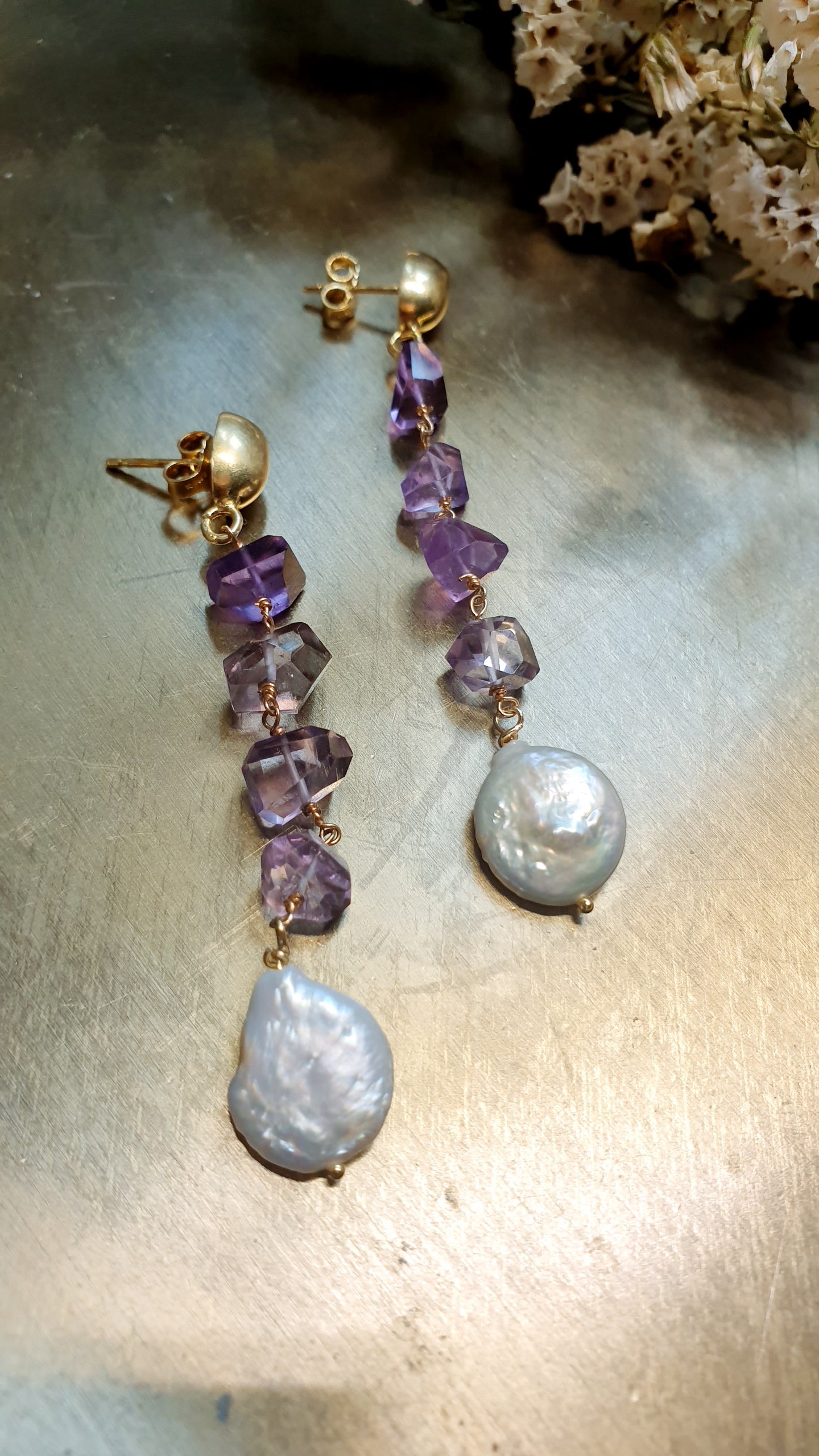 Orecchini in argento con ametiste e perle