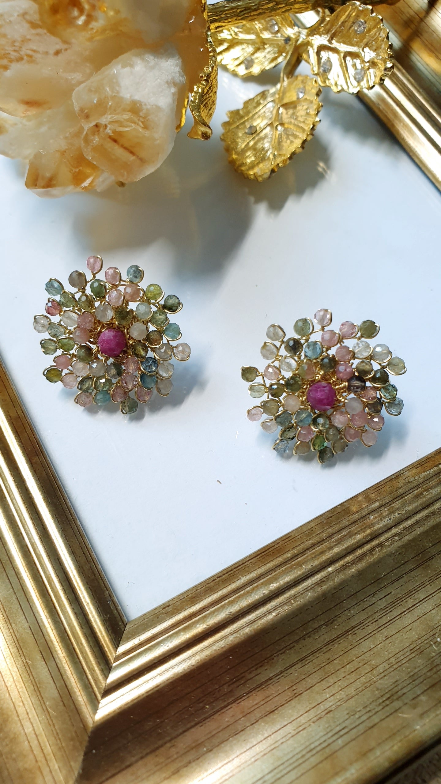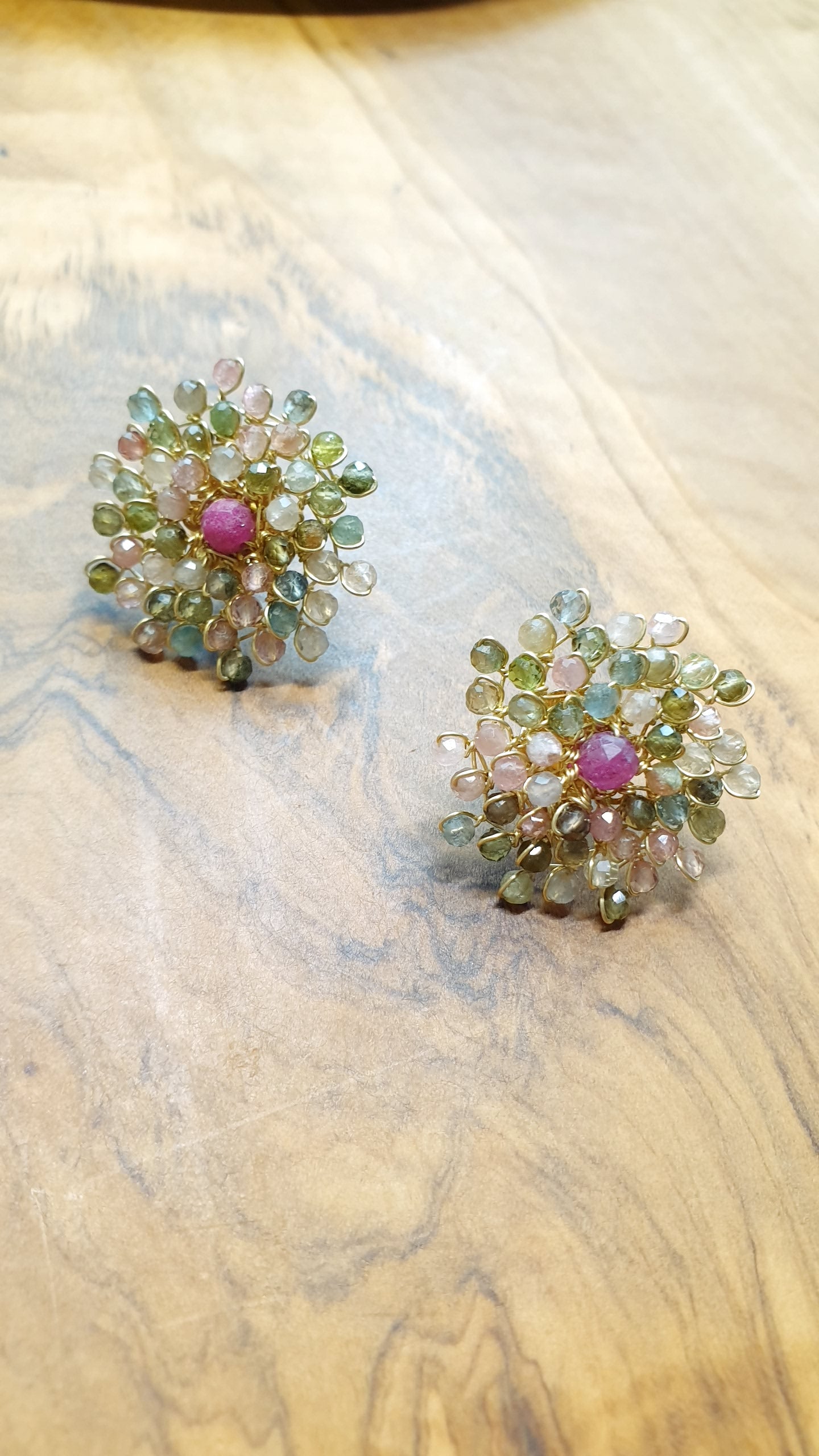 Orecchini artigianali realizzati congancio a perno in argento 925 anallergico placcato oro.