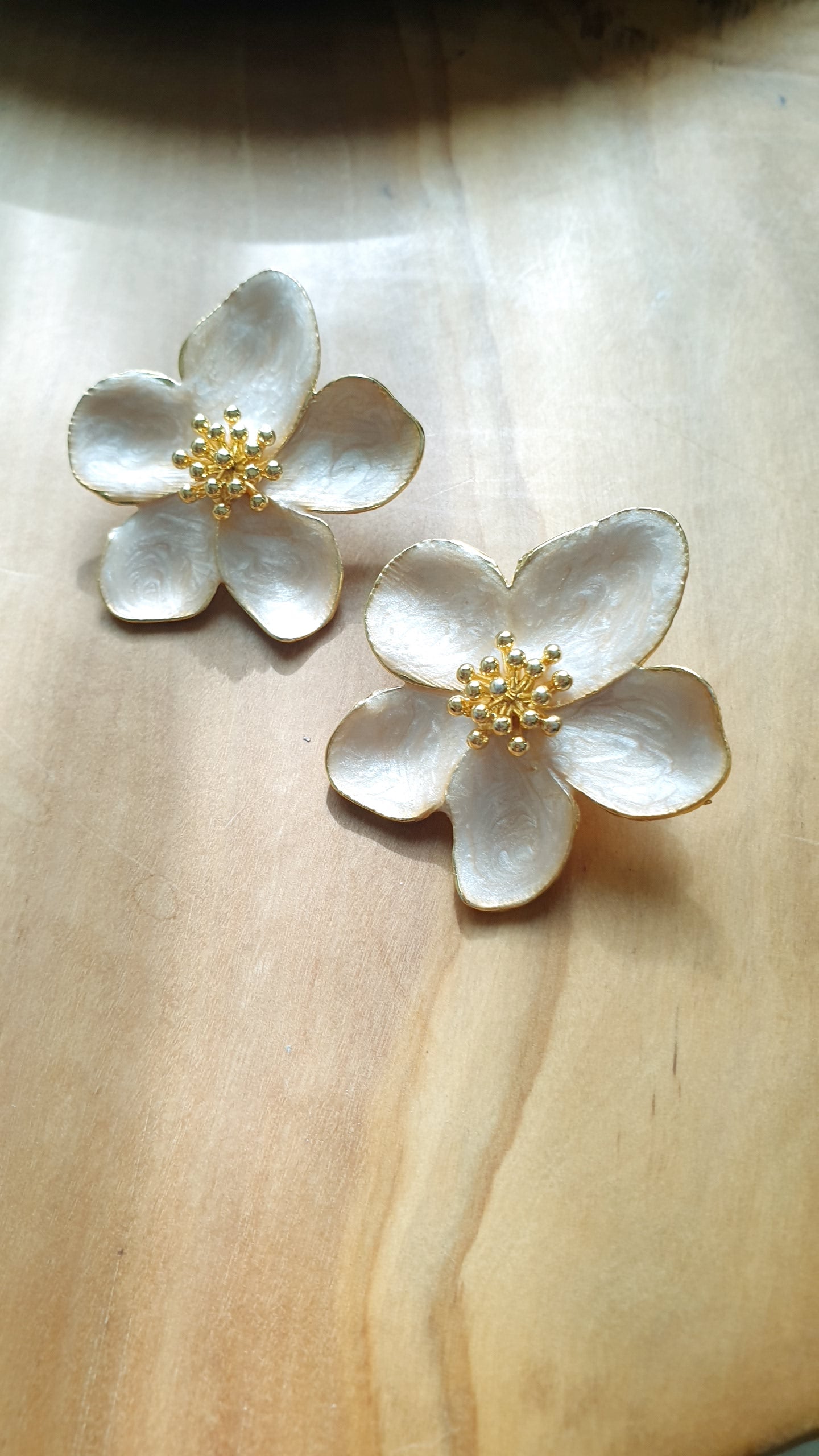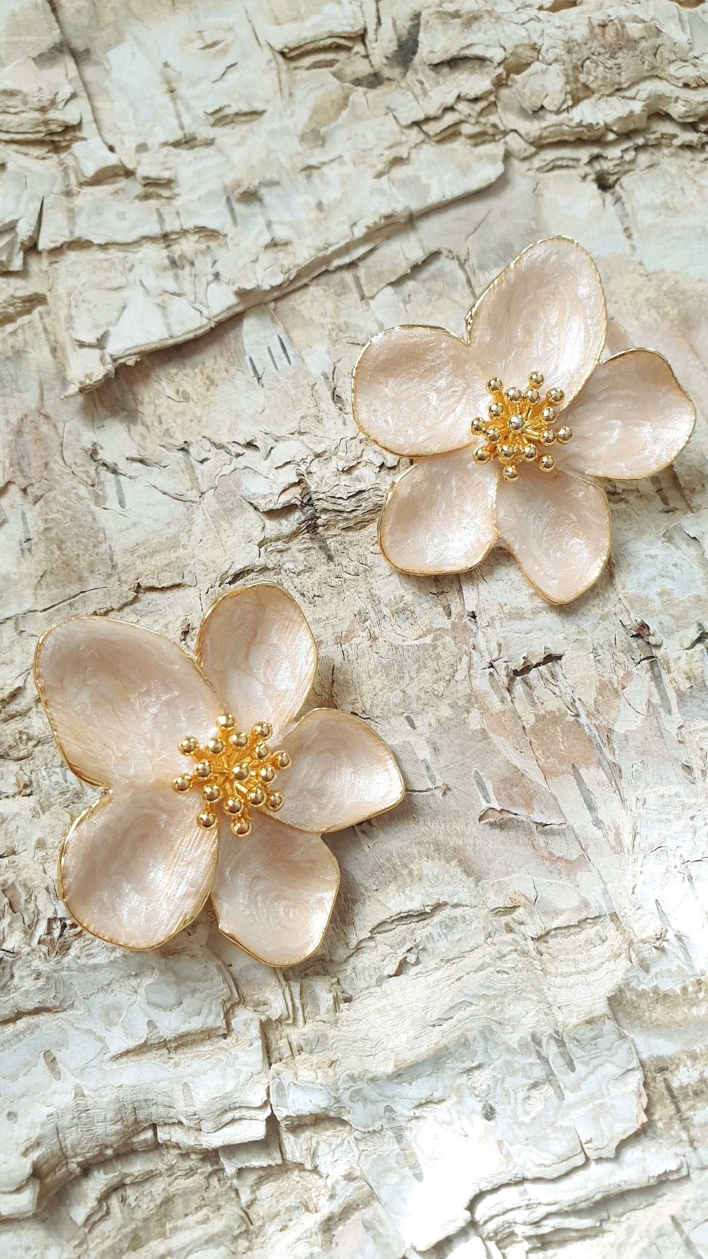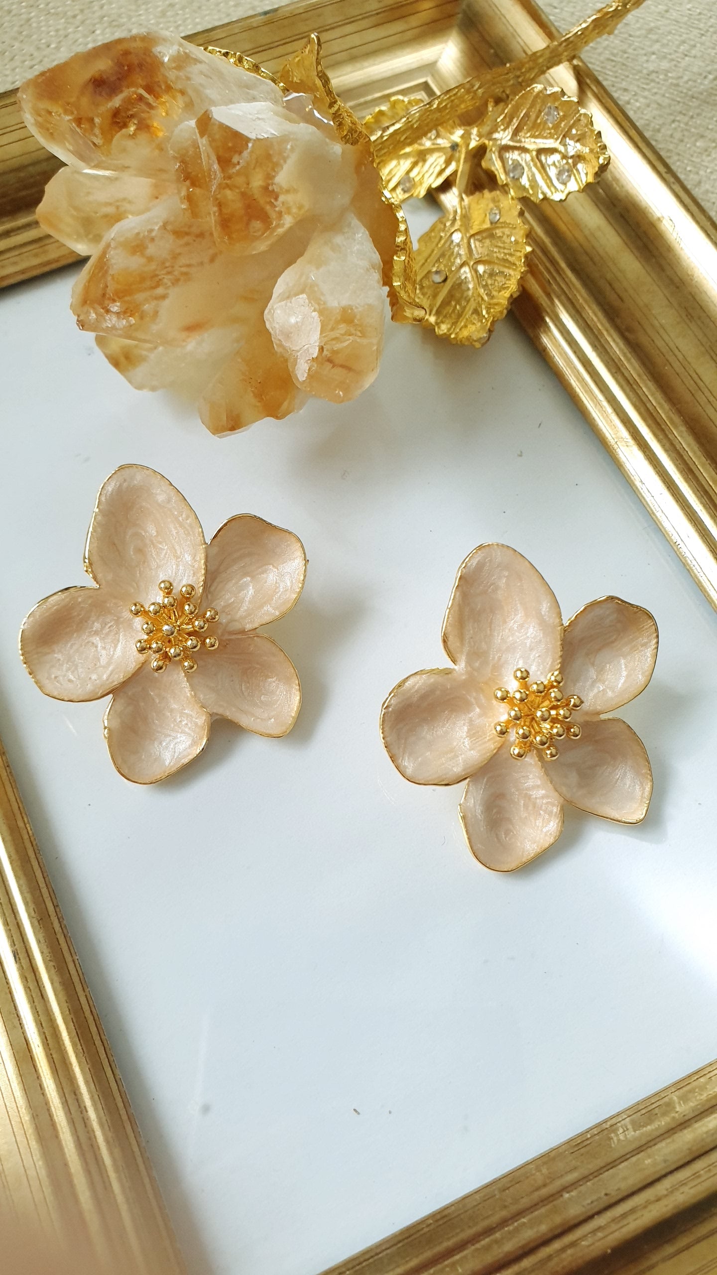 Orecchini a perno in ottone con lacca color rosa/carne cm. 4